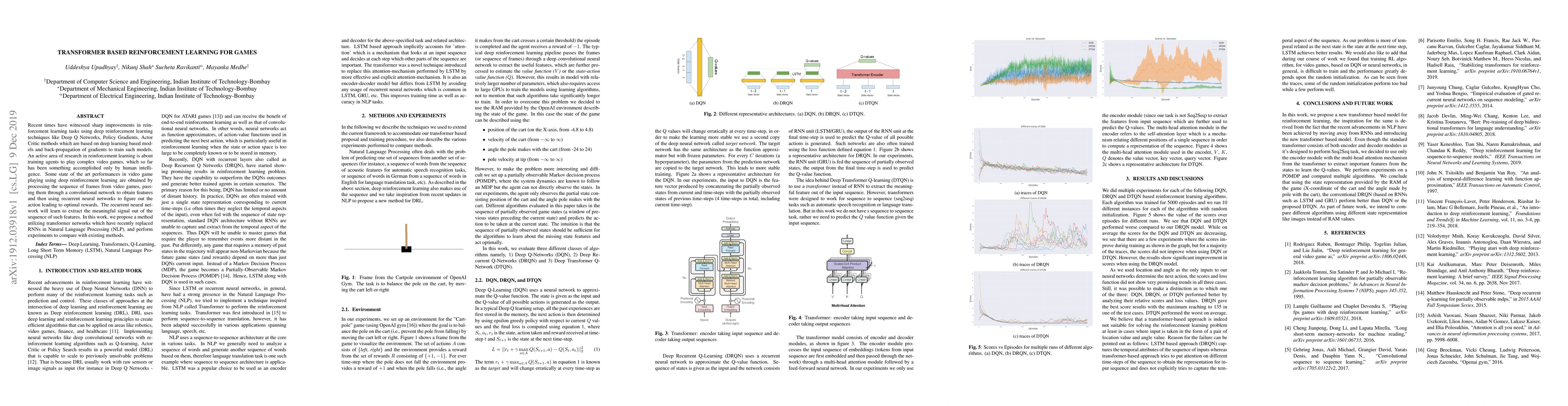 This paper proposes a transformer-based reinforcement learning approach to improve agent performance in complex video games, leveraging transformers' recent success in NLP to replace traditional RNNs for feature extraction and action selection. Experimental results compare the proposed method against existing deep reinforcement learning techniques.