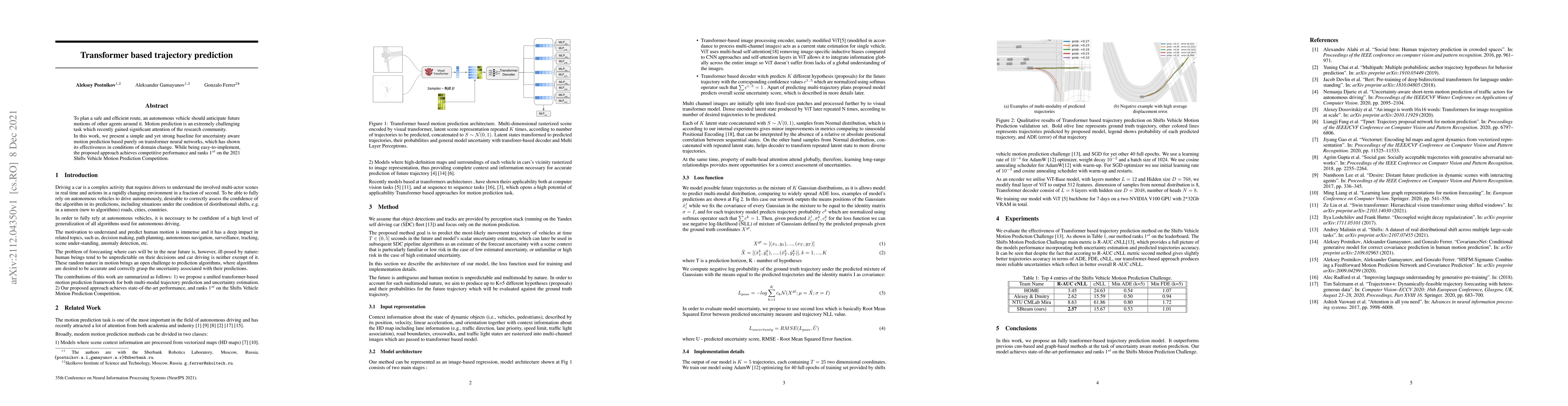 To plan a safe and efficient route, an autonomous vehicle should anticipate future motions of other agents around it. Motion prediction is an extremely challenging task which recently gained significant attention of the research community. In this work, we present a simple and yet strong baseline for uncertainty aware motion prediction based purely on transformer neural networks, which has shown its effectiveness in conditions of domain change. While being easy-to-implement, the proposed approach achieves competitive performance and ranks 1$^{st}$ on the 2021 Shifts Vehicle Motion Prediction Competition.