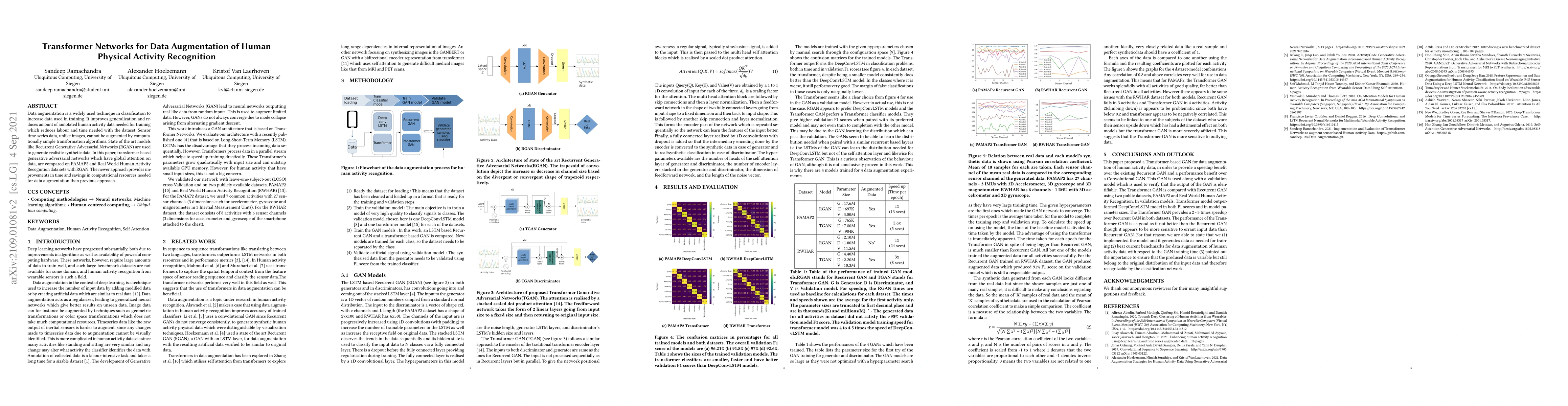 Data augmentation is a widely used technique in classification to increase data used in training. It improves generalization and reduces amount of annotated human activity data needed for training which reduces labour and time needed with the dataset. Sensor time-series data, unlike images, cannot be augmented by computationally simple transformation algorithms. State of the art models like Recurrent Generative Adversarial Networks (RGAN) are used to generate realistic synthetic data. In this paper, transformer based generative adversarial networks which have global attention on data, are compared on PAMAP2 and Real World Human Activity Recognition data sets with RGAN. The newer approach provides improvements in time and savings in computational resources needed for data augmentation than previous approach.