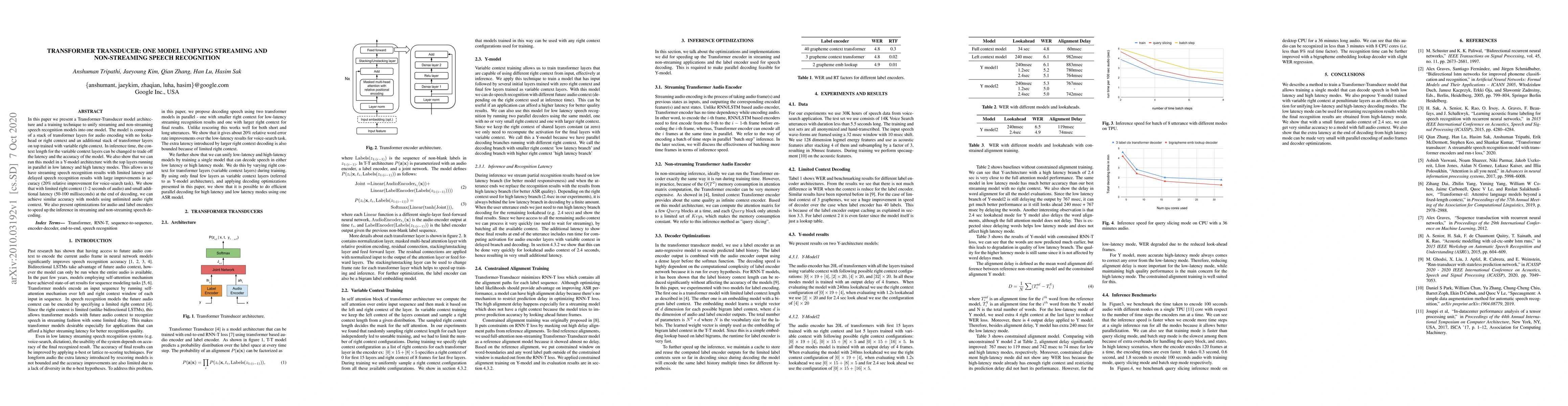This paper introduces a Transformer-Transducer model that unifies streaming and non-streaming speech recognition, achieving a balance between latency and accuracy. The model employs a Y-architecture for parallel processing, offering both low-latency streaming and high-accuracy delayed recognition.