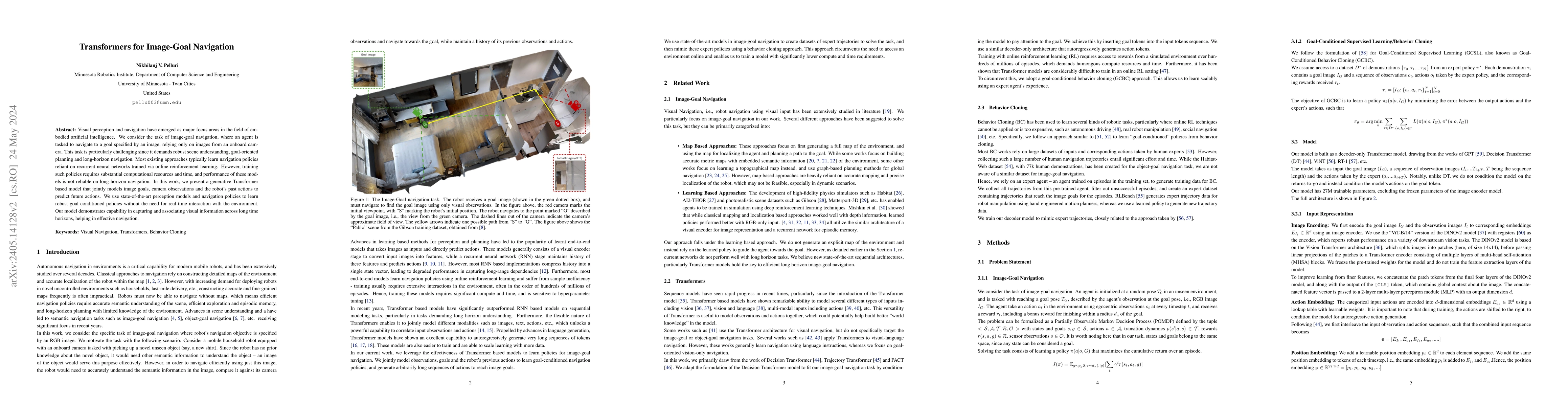 This research proposes a generative Transformer-based model for image-goal navigation in embodied AI, which jointly models image goals, onboard camera observations, and past actions to predict future navigation actions without requiring real-time environment interaction. The model demonstrates improved robustness and long-horizon navigation compared to existing recurrent neural network approaches.