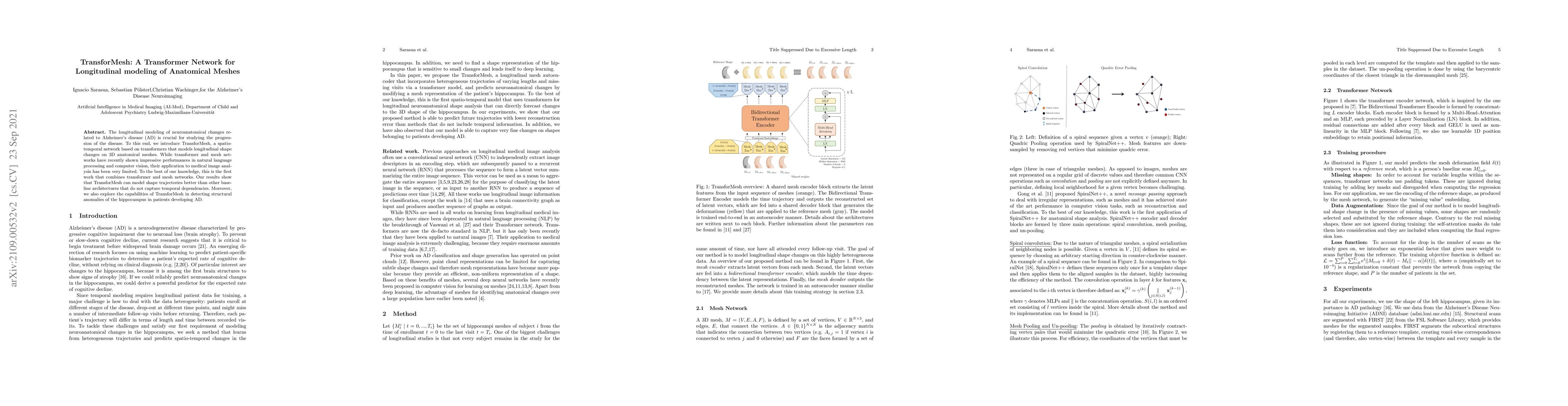 TransforMesh is a novel transformer network designed for modeling longitudinal changes in 3D anatomical meshes related to Alzheimer's disease. It outperforms other baseline models by better capturing temporal dependencies and detecting structural anomalies in the hippocampus.