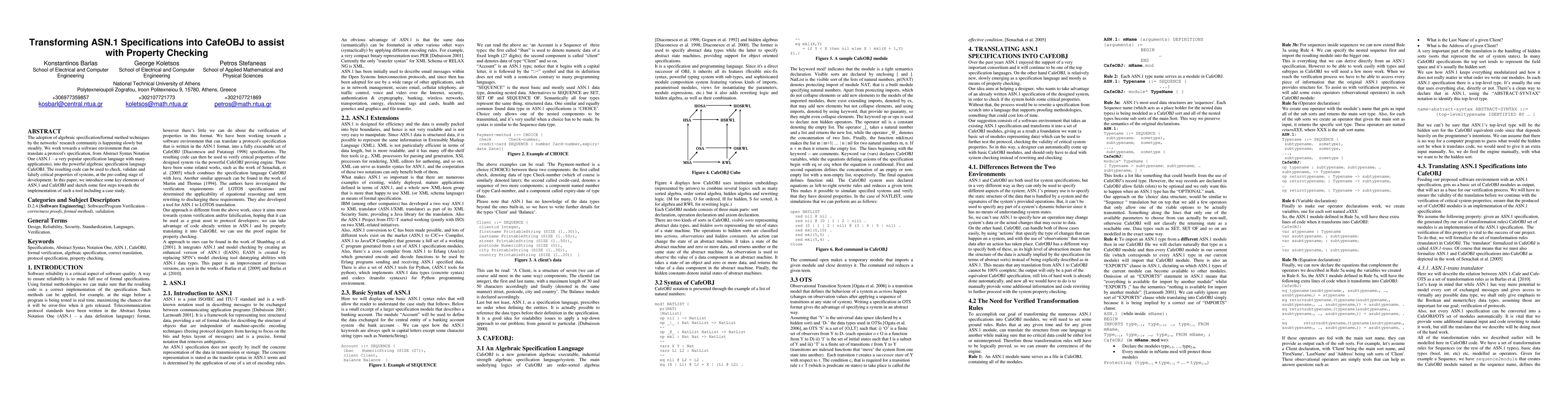 The adoption of algebraic specification/formal method techniques by the networks' research community is happening slowly but steadily. We work towards a software environment that can translate a protocol's specification, from Abstract Syntax Notation One (ASN.1 - a very popular specification language with many applications), into the powerful algebraic specification language CafeOBJ. The resulting code can be used to check, validate and falsify critical properties of systems, at the pre-coding stage of development. In this paper, we introduce some key elements of ASN.1 and CafeOBJ and sketch some first steps towards the implementation of such a tool including a case study.