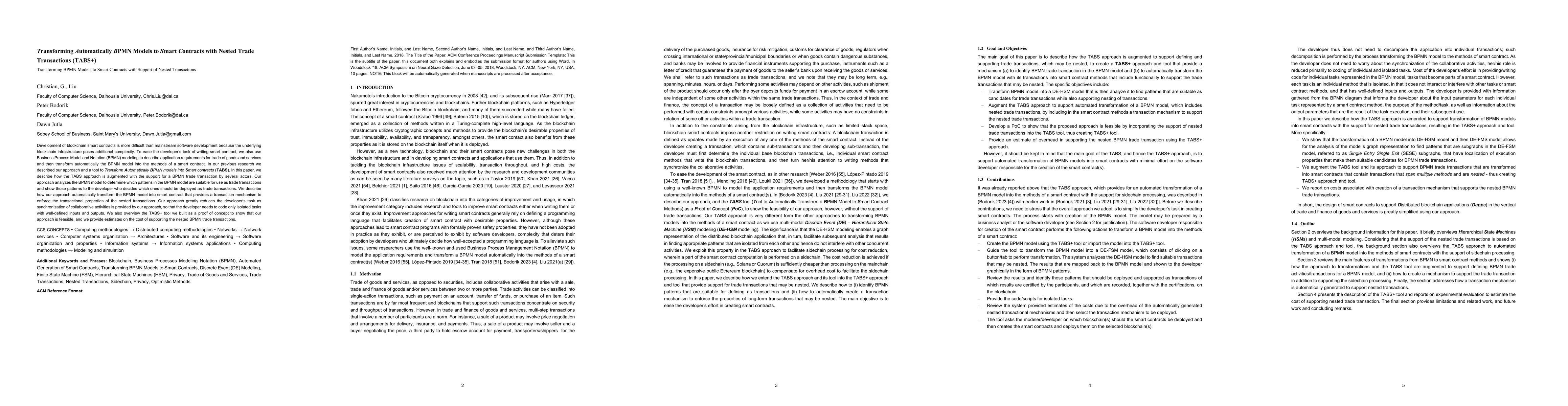 This work is novel in its integration of BPMN modeling with smart contract development, specifically focusing on nested collaborative transactions, and providing an automated transformation process.