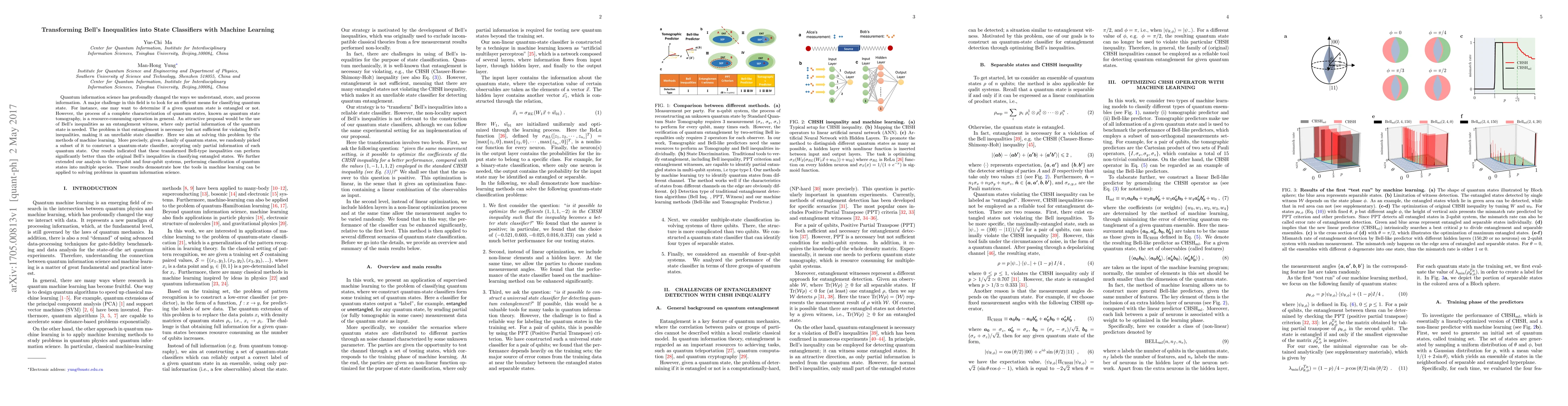 This paper explores using machine learning to transform Bell's inequalities into effective classifiers for quantum states, showing that these transformed inequalities outperform the original Bell's inequalities in identifying entangled states, even with partial information. The study extends this approach to classify multiple species of quantum states in systems with up to four qubits.