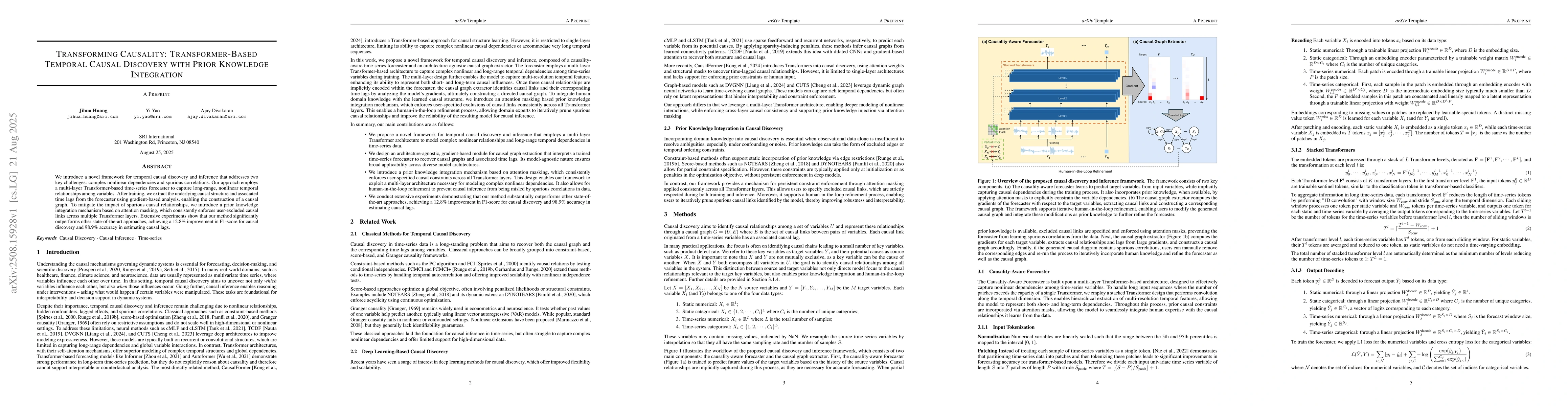 We introduce a novel framework for temporal causal discovery and inference that addresses two key challenges: complex nonlinear dependencies and spurious correlations. Our approach employs a multi-layer Transformer-based time-series forecaster to capture long-range, nonlinear temporal relationships among variables. After training, we extract the underlying causal structure and associated time lags from the forecaster using gradient-based analysis, enabling the construction of a causal graph. To mitigate the impact of spurious causal relationships, we introduce a prior knowledge integration mechanism based on attention masking, which consistently enforces user-excluded causal links across multiple Transformer layers. Extensive experiments show that our method significantly outperforms other state-of-the-art approaches, achieving a 12.8% improvement in F1-score for causal discovery and 98.9% accuracy in estimating causal lags.