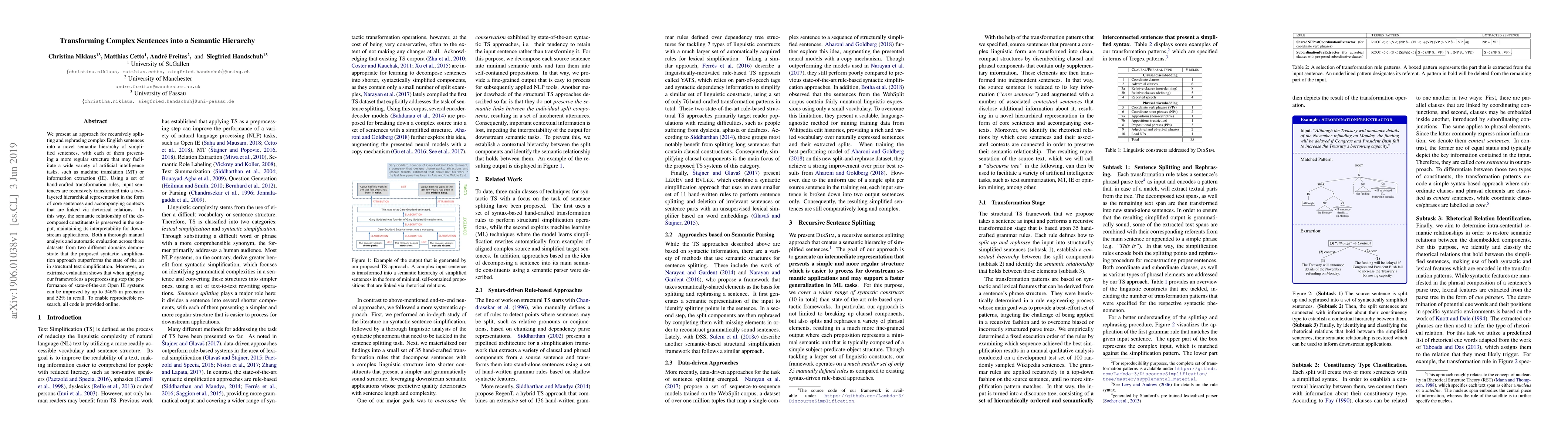 Researchers developed a method to simplify complex sentences into a hierarchical structure that can improve AI tasks like machine translation and information extraction. Their approach outperformed the state of the art in structural text simplification and improved the performance of Open IE systems by up to 346%.