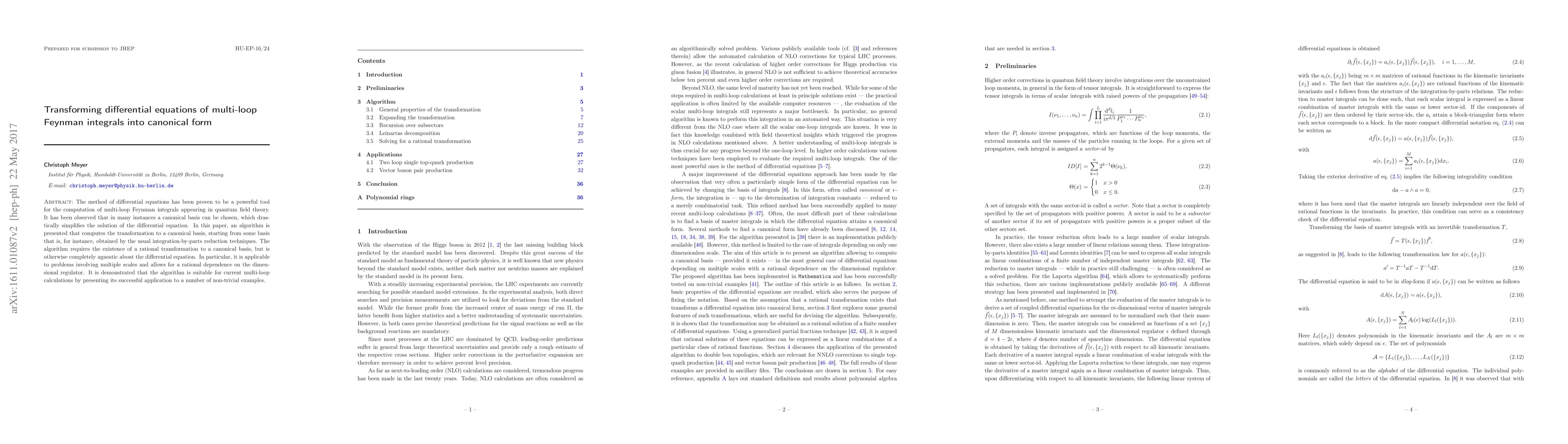 This paper introduces an algorithm to transform differential equations of multi-loop Feynman integrals into a canonical form, simplifying their solution. The algorithm is versatile, applicable to problems with multiple scales and dimensional regulators, and demonstrated effective through non-trivial examples.