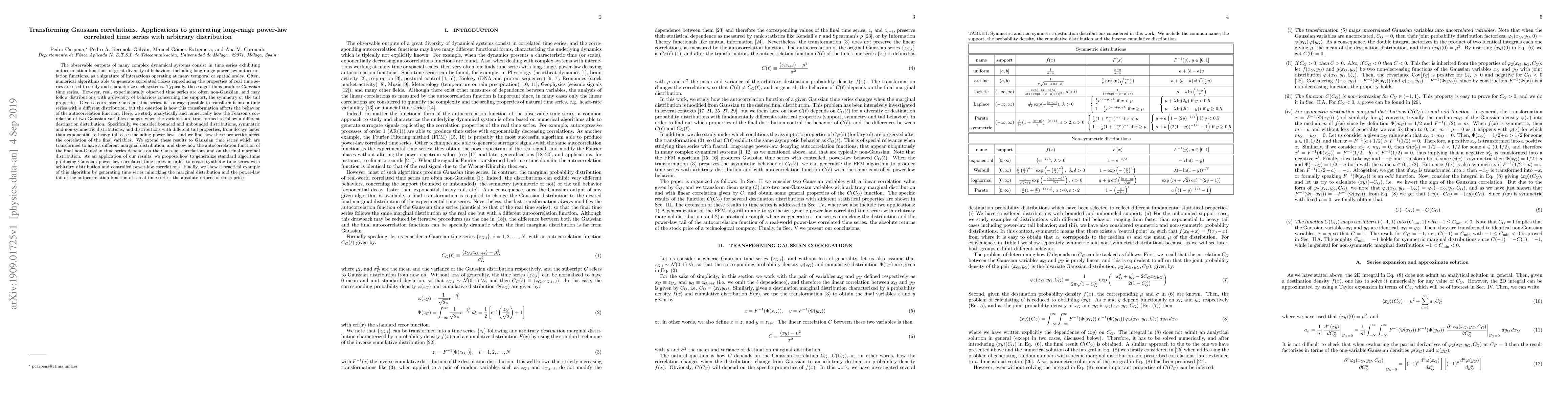 The observable outputs of many complex dynamical systems consist in time series exhibiting autocorrelation functions of great diversity of behaviors, including long-range power-law autocorrelation functions, as a signature of interactions operating at many temporal or spatial scales. Often, algorithms able to generate correlated noises reproducing the properties of real time series produce \textsl{Gaussian} outputs, while real, experimentally observed time series are often non-Gaussian, and may follow distributions with a diversity of behaviors concerning the support, the symmetry or the tail properties. Here, we study how the correlation of two Gaussian variables changes when they are transformed to follow a different destination distribution. Specifically, we consider bounded and unbounded distributions, symmetric and non-symmetric distributions, and distributions with different tail properties, from decays faster than exponential to heavy tail cases including power-laws, and we find how these properties affect the correlation of the final variables. We extend these results to Gaussian time series which are transformed to have a different marginal distribution, and show how the autocorrelation function of the final non-Gaussian time series depends on the Gaussian correlations and on the final marginal distribution. As an application of our results, we propose how to generalize standard algorithms producing Gaussian power-law correlated time series in order to create synthetic time series with arbitrary distribution and controlled power-law correlations. Finally, we show a practical example of this algorithm by generating time series mimicking the marginal distribution and the power-law tail of the autocorrelation function of a real time series: the absolute returns of stock prices.