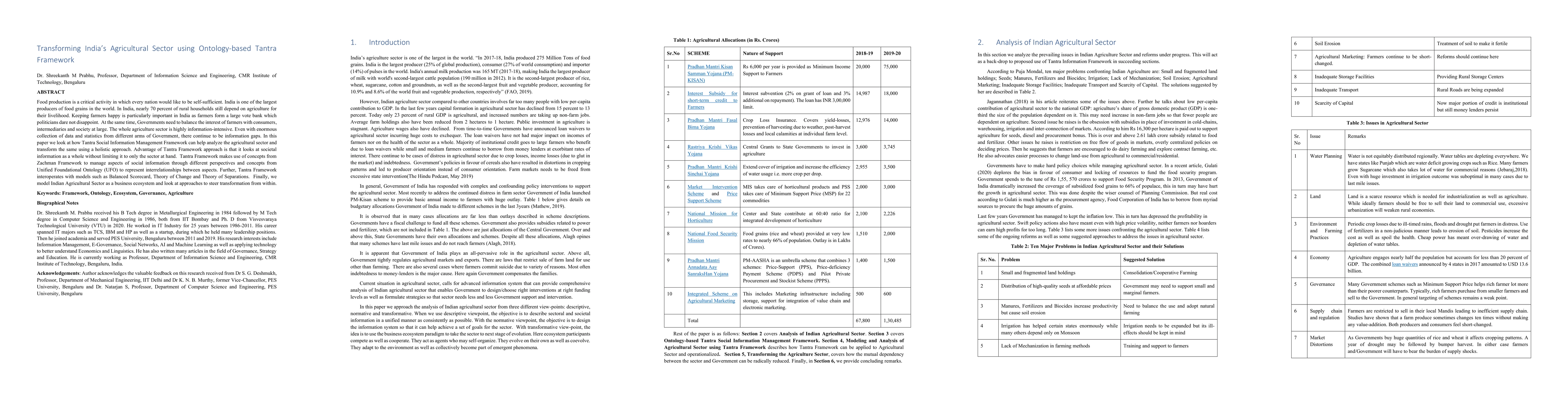 Food production is a critical activity in which every nation would like to be self-sufficient. India is one of the largest producers of food grains in the world. In India, nearly 70 percent of rural households still depend on agriculture for their livelihood. Keeping farmers happy is particularly important in India as farmers form a large vote bank which politicians dare not disappoint. At the same time, Governments need to balance the interest of farmers with consumers, intermediaries and society at large. The whole agriculture sector is highly information-intensive. Even with enormous collection of data and statistics from different arms of Government, there continue to be information gaps. In this paper we look at how Tantra Social Information Management Framework can help analyze the agricultural sector and transform the same using a holistic approach. Advantage of Tantra Framework approach is that it looks at societal information as a whole without limiting it to only the sector at hand. Tantra Framework makes use of concepts from Zachman Framework to manage aspects of social information through different perspectives and concepts from Unified Foundational Ontology (UFO) to represent interrelationships between aspects. Further, Tantra Framework interoperates with models such as Balanced Scorecard, Theory of Change and Theory of Separations. Finally, we model Indian Agricultural Sector as a business ecosystem and look at approaches to steer transformation from within.