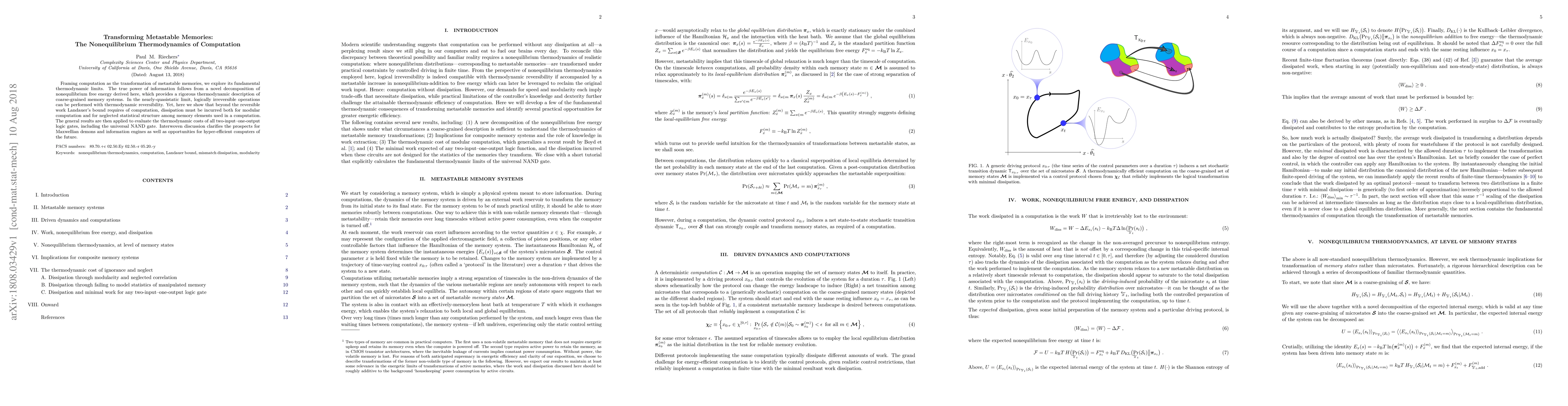 Framing computation as the transformation of metastable memories, we explore its fundamental thermodynamic limits. The true power of information follows from a novel decomposition of nonequilibrium free energy derived here, which provides a rigorous thermodynamic description of coarse-grained memory systems. In the nearly-quasistatic limit, logically irreversible operations can be performed with thermodynamic reversibility. Yet, here we show that beyond the reversible work Landauer's bound requires of computation, dissipation must be incurred both for modular computation and for neglected statistical structure among memory elements used in a computation. The general results are then applied to evaluate the thermodynamic costs of all two-input--one-output logic gates, including the universal NAND gate. Interwoven discussion clarifies the prospects for Maxwellian demons and information engines as well as opportunities for hyper-efficient computers of the future.
