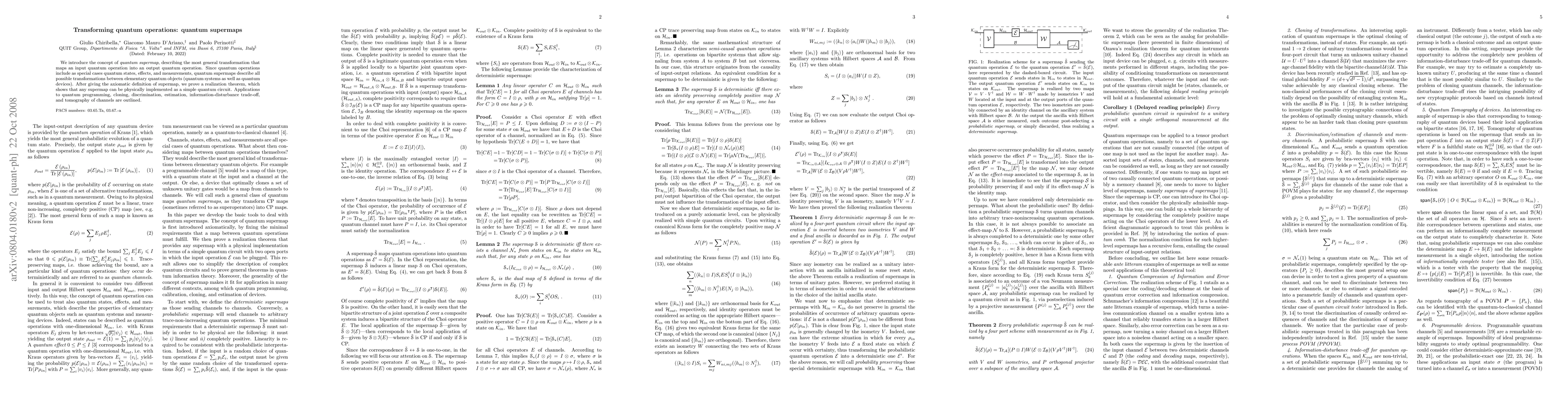 This paper introduces quantum supermaps, the most general transformations mapping quantum operations to other quantum operations, encompassing quantum states, effects, and measurements. The authors prove a realization theorem demonstrating that any supermap can be implemented via a quantum circuit, with applications in quantum programming, cloning, discrimination, and information theory.