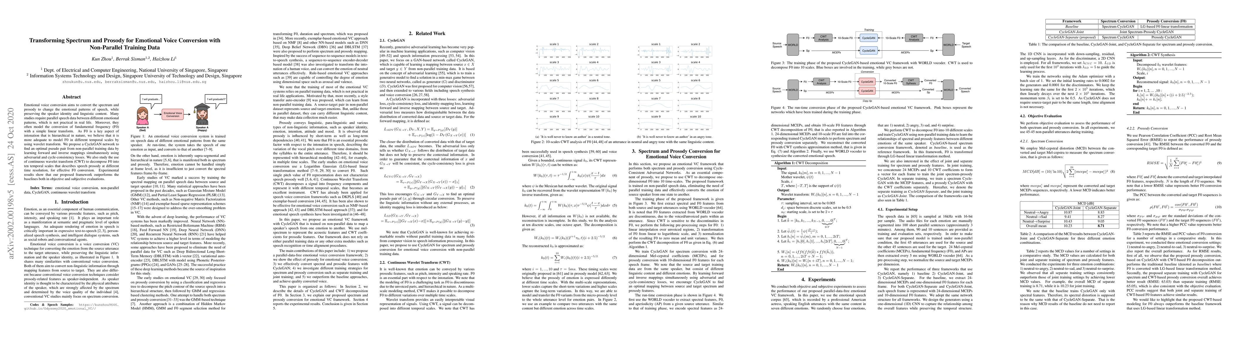 This paper proposes a CycleGAN network for emotional voice conversion using non-parallel training data, employing continuous wavelet transform to model fundamental frequency across temporal scales for improved prosody conversion. Experimental results demonstrate superior performance over baselines in both objective and subjective evaluations.