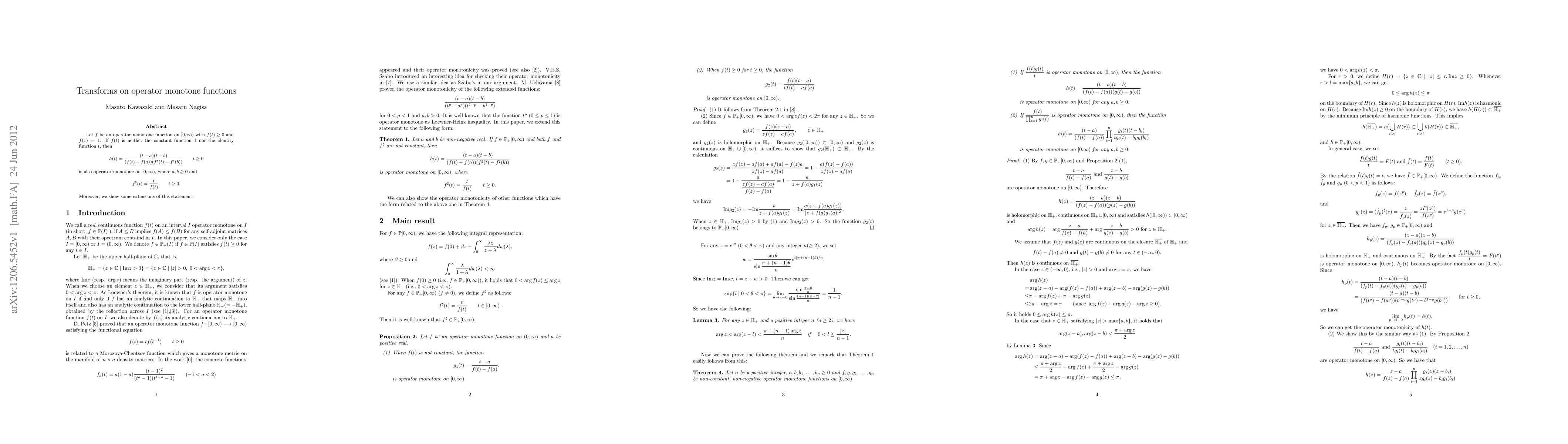 A research paper proves that a specific function type remains operator monotone if an operator monotone function is used to define its parameters. This finding has implications for understanding the properties of such functions.