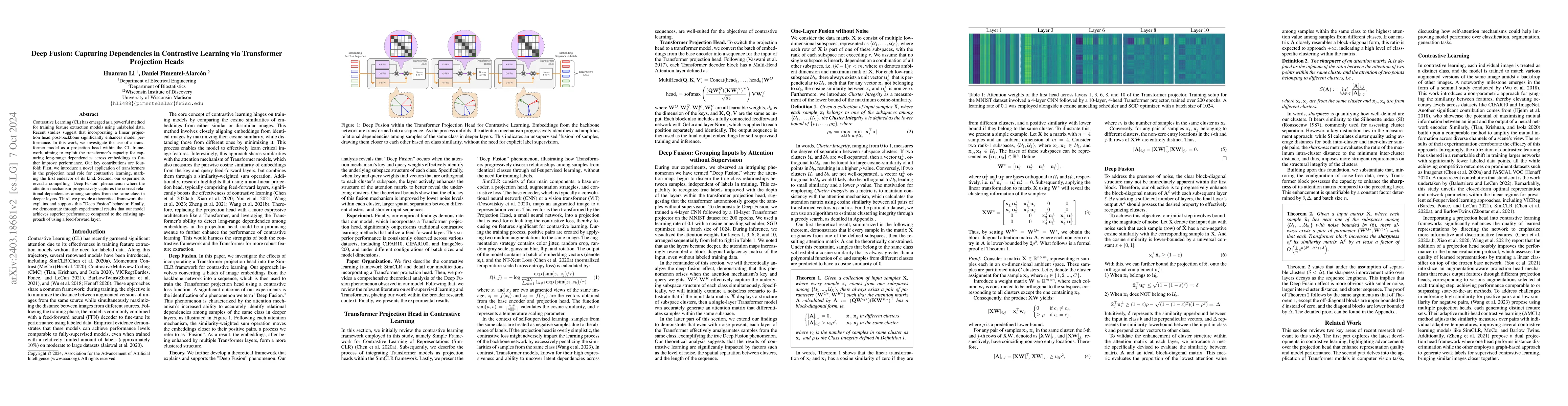 This paper proposes a novel framework, TransFusion, designed to make the process of contrastive learning more analytical and explainable. TransFusion consists of attention blocks whose softmax being replaced by ReLU, and its final block's weighted-sum operation is truncated to leave the adjacency matrix as the output. The model is trained by minimizing the Jensen-Shannon Divergence between its output and the target affinity matrix, which indicates whether each pair of samples belongs to the same or different classes. The main contribution of TransFusion lies in defining a theoretical limit for answering two fundamental questions in the field: the maximum level of data augmentation and the minimum batch size required for effective contrastive learning. Furthermore, experimental results indicate that TransFusion successfully extracts features that isolate clusters from complex real-world data, leading to improved classification accuracy in downstream tasks.