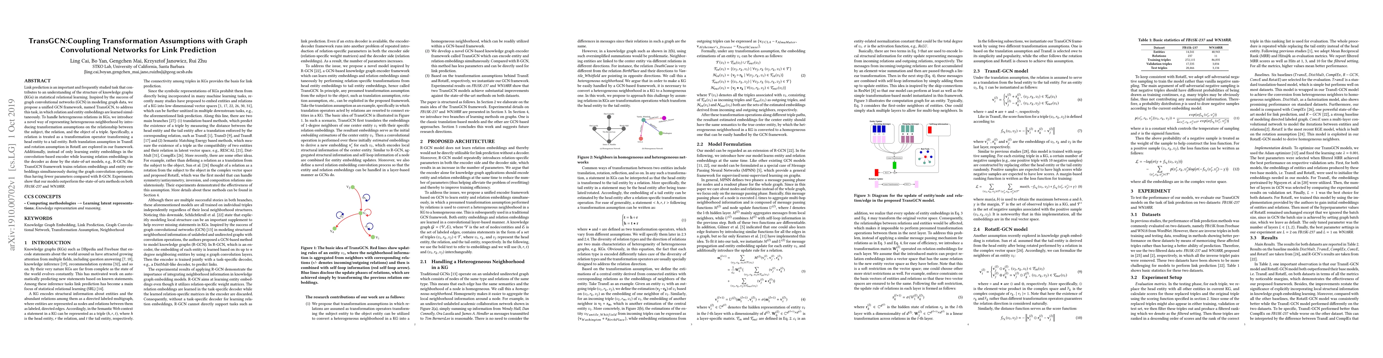 TransGCN integrates transformation assumptions with graph convolutional networks to enhance link prediction in knowledge graphs by simultaneously learning relation and entity embeddings. It outperforms existing methods on benchmark datasets by training both embeddings concurrently during convolution.