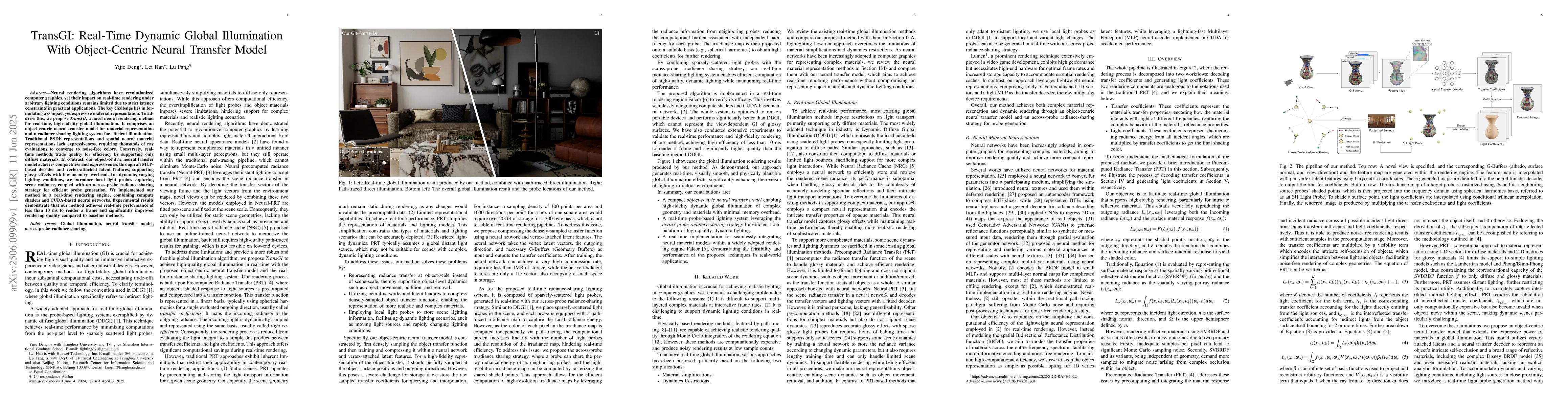 Researchers introduced TransGI, a neural rendering method for real-time global illumination with object-centric material representation and efficient lighting, achieving <10ms rendering performance and improved quality.
