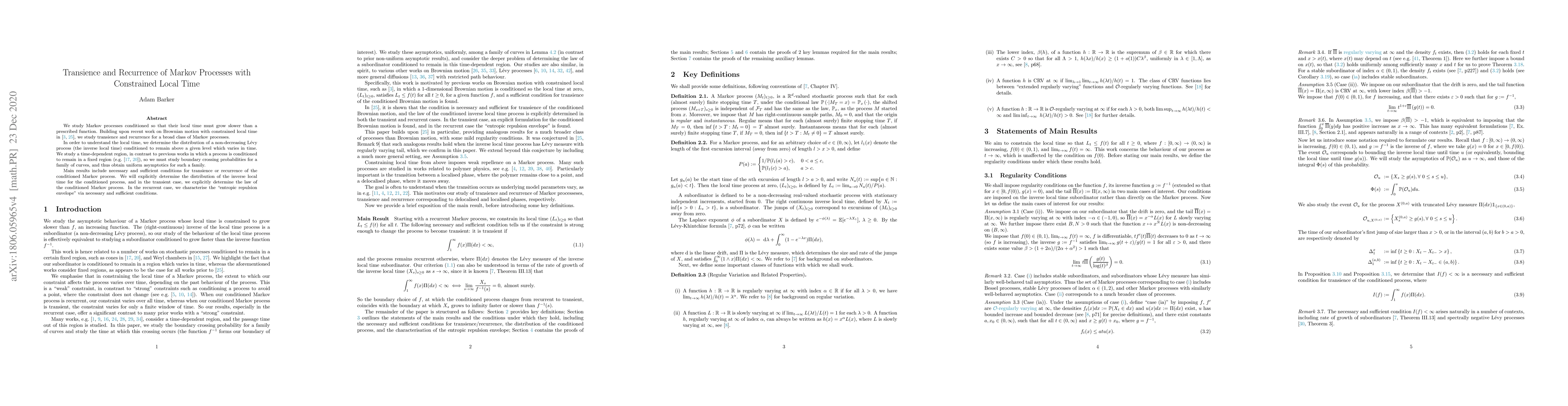This paper investigates Markov processes conditioned to have slower local time growth than a specified function, determining conditions for their transience or recurrence. It introduces a time-dependent region and studies boundary crossing probabilities, leading to uniform asymptotics and explicit distributions of the conditioned processes.