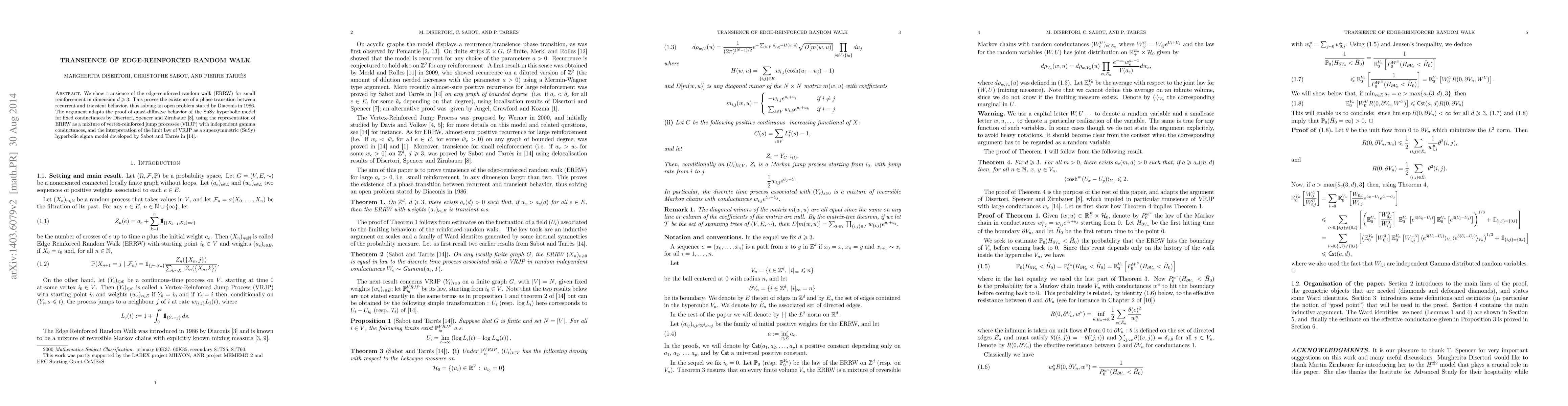 This paper demonstrates the transience of edge-reinforced random walk (ERRW) in dimensions greater than 2 for small reinforcement, establishing a phase transition in behavior and solving an open problem posed by Diaconis in 1986. The proof leverages the quasi-diffusive behavior of the SuSy hyperbolic model and the representation of ERRW as a mixture of vertex-reinforced jump processes.