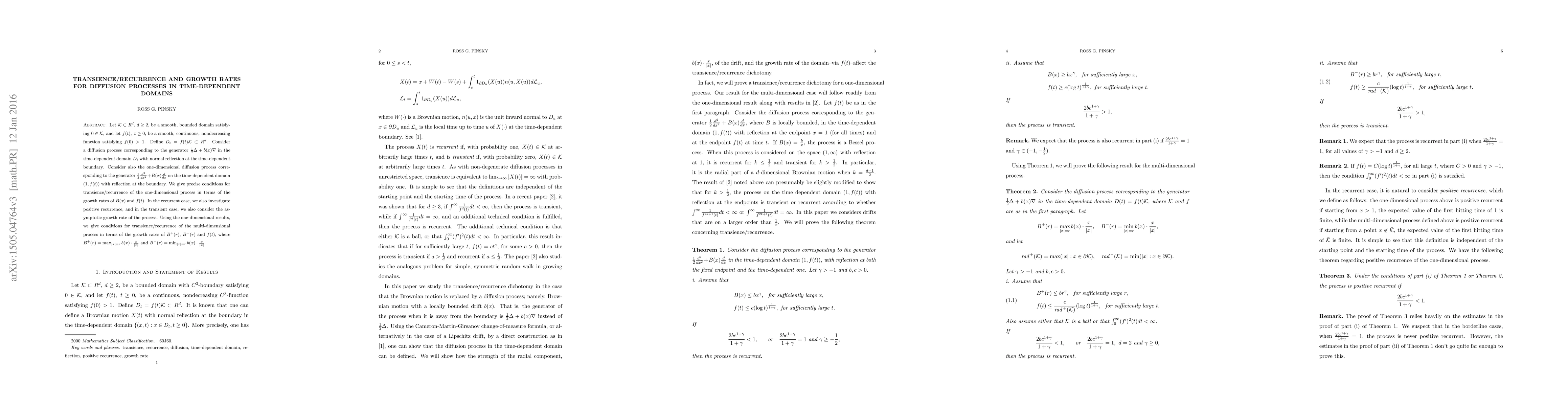 This research paper studies diffusion processes in time-dependent domains with reflection at changing boundaries, providing conditions for transience/recurrence and exploring growth rates of the process.