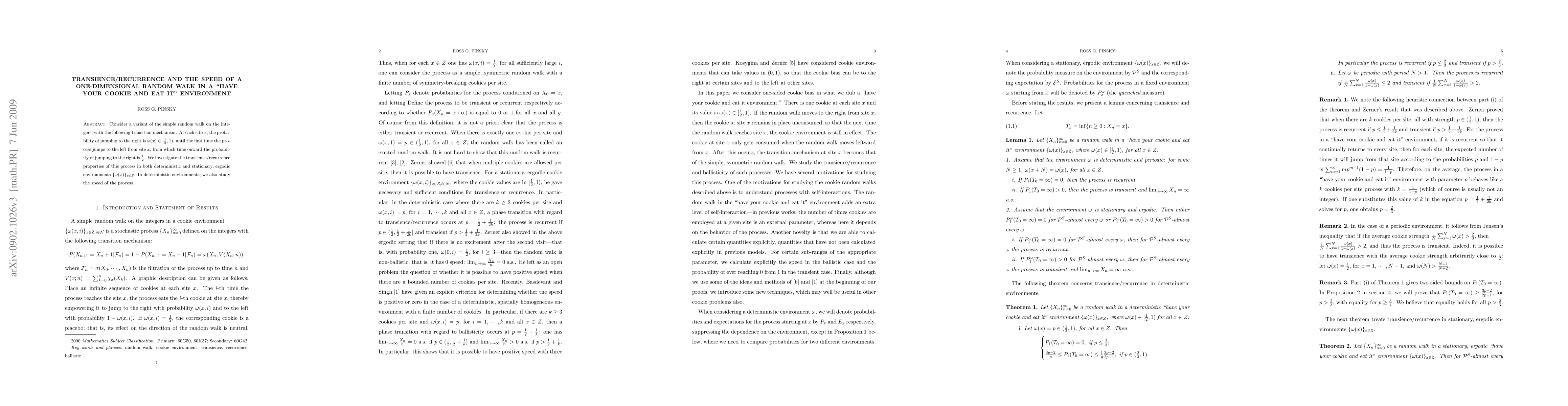 Consider a simple random walk on the integers with the following transition mechanism. At each site $x$, the probability of jumping to the right is $\omega(x)\in[\frac12,1)$, until the first time the process jumps to the left from site $x$, from which time onward the probability of jumping to the right is $\frac12$. We investigate the transience/recurrence properties of this process in both deterministic and stationary, ergodic environments $\{\omega(x)\}_{x\in Z}$. In deterministic environments, we also study the speed of the process.