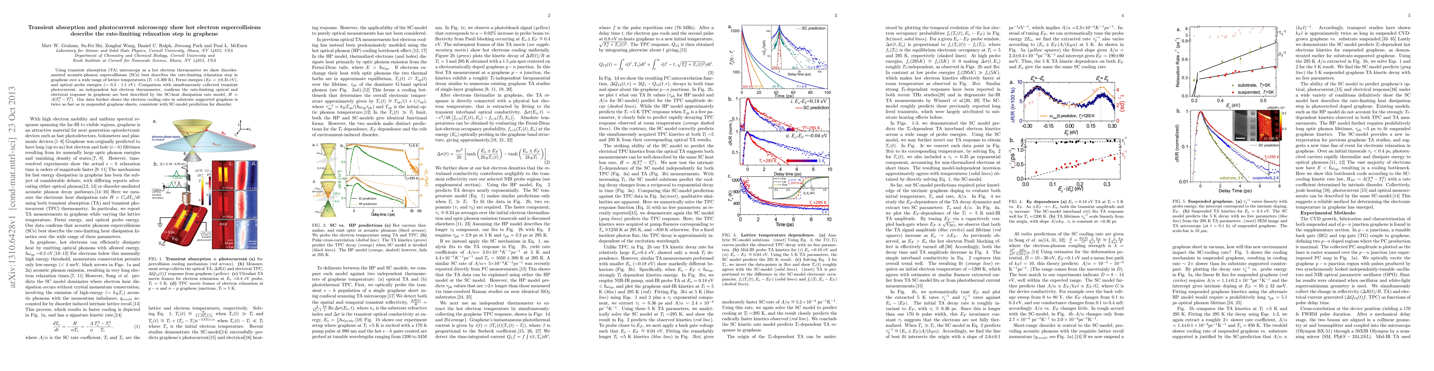 Summary: Transient absorption and photocurrent microscopy reveal that disorder-assisted acoustic-phonon supercollisions are the primary mechanism for hot electron relaxation in graphene, with the electron cooling rate being twice as fast in substrate-supported graphene compared to suspended graphene, as predicted by the supercollision-heat dissipation model.