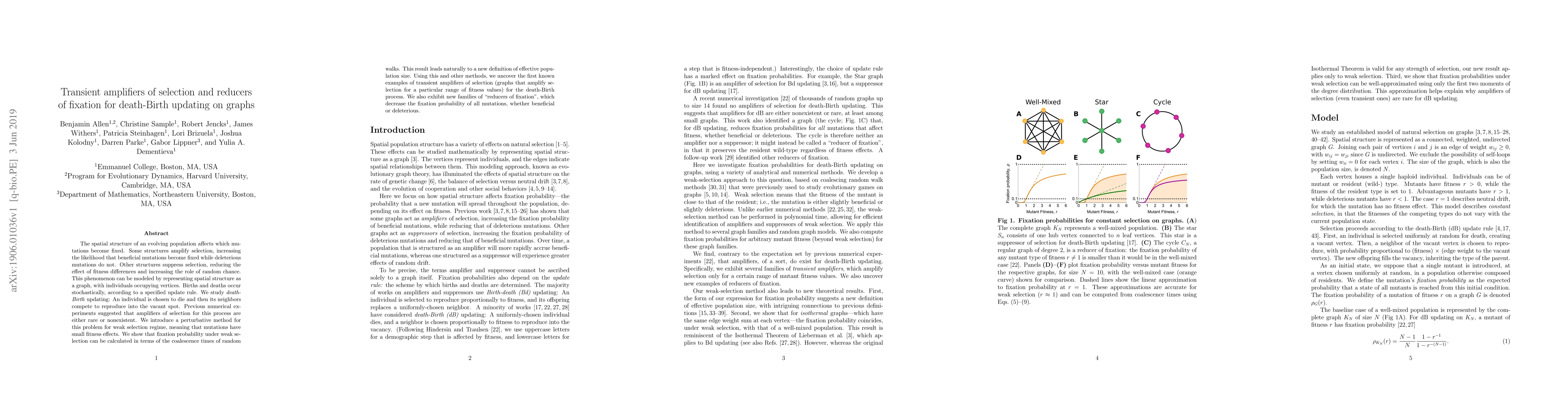 This paper explores how spatial structures in evolving populations influence mutation fixation under death-birth updating on graphs. It introduces a method for calculating fixation probabilities in weak selection regimes, revealing the first examples of transient amplifiers of selection and new families of "reducers of fixation."