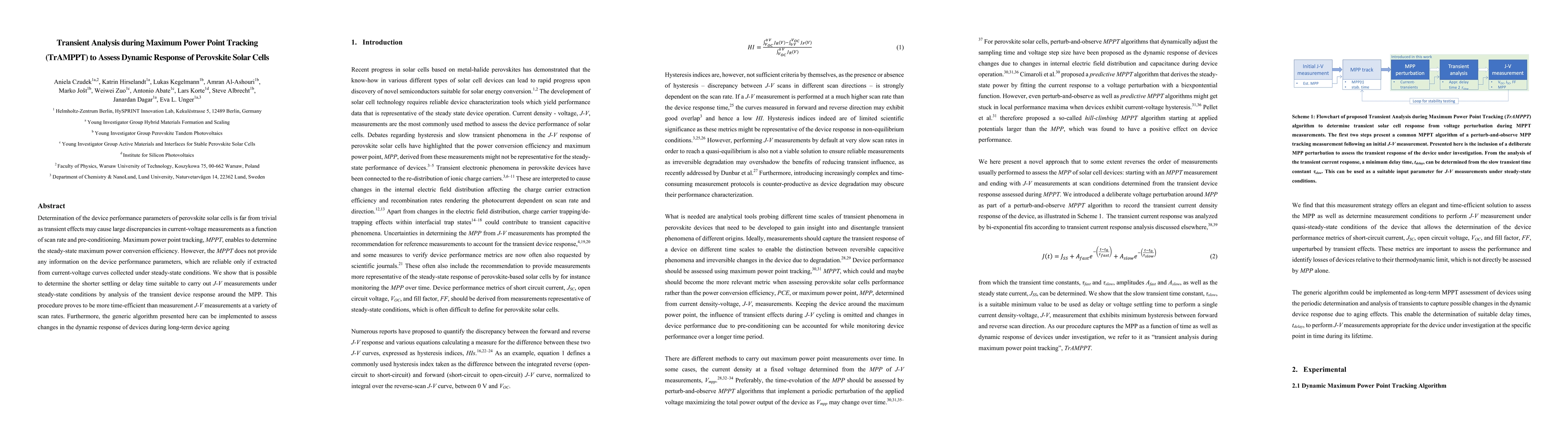 This paper proposes a transient analysis method called TrAMPPT to determine the optimal delay time for steady-state current-voltage measurements in perovskite solar cells, enhancing efficiency and reducing measurement time compared to traditional methods. The method also assesses dynamic response changes during device ageing.