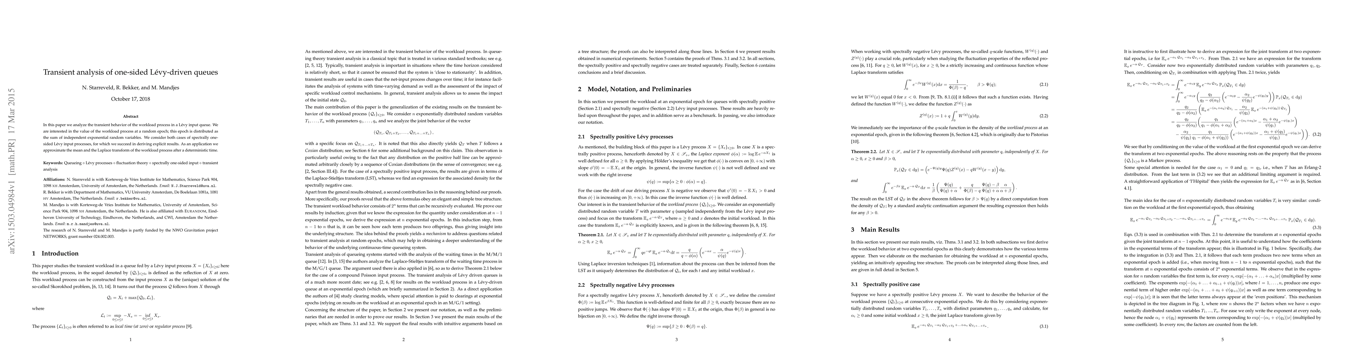 This paper investigates the transient behavior of workload in a Lévy-driven queue, focusing on the value at a random time determined by the sum of exponential random variables. Explicit results are derived for spectrally one-sided Lévy input processes, and the mean and Laplace transform of the workload after a fixed time are approximated.