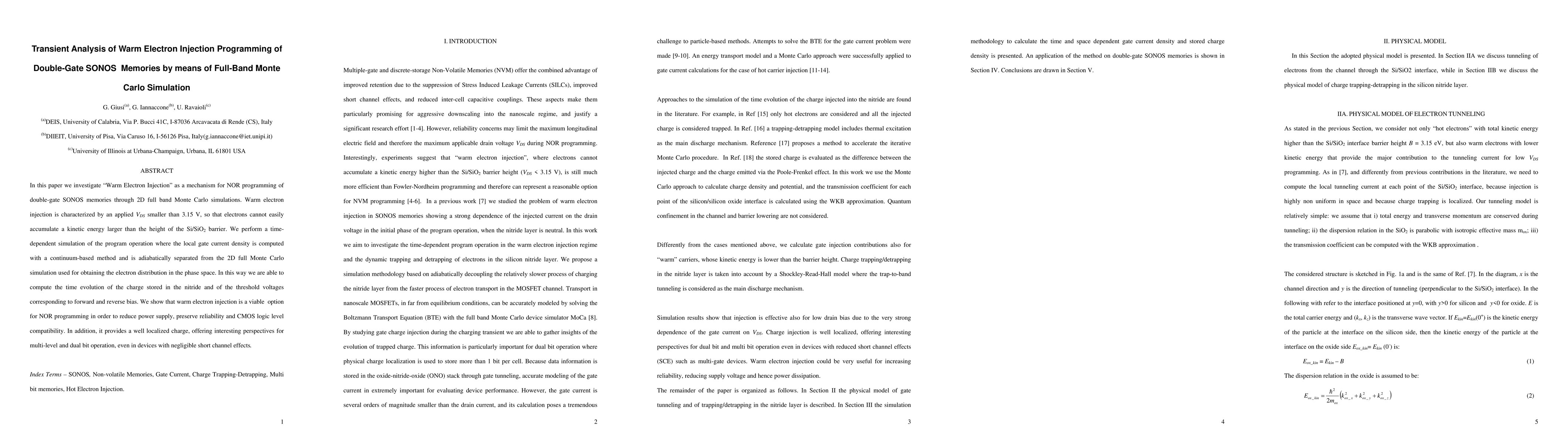 Researchers explored a new method for programming double-gate SONOS memories using warm electron injection, which reduces power supply, preserves reliability, and maintains CMOS logic level compatibility.