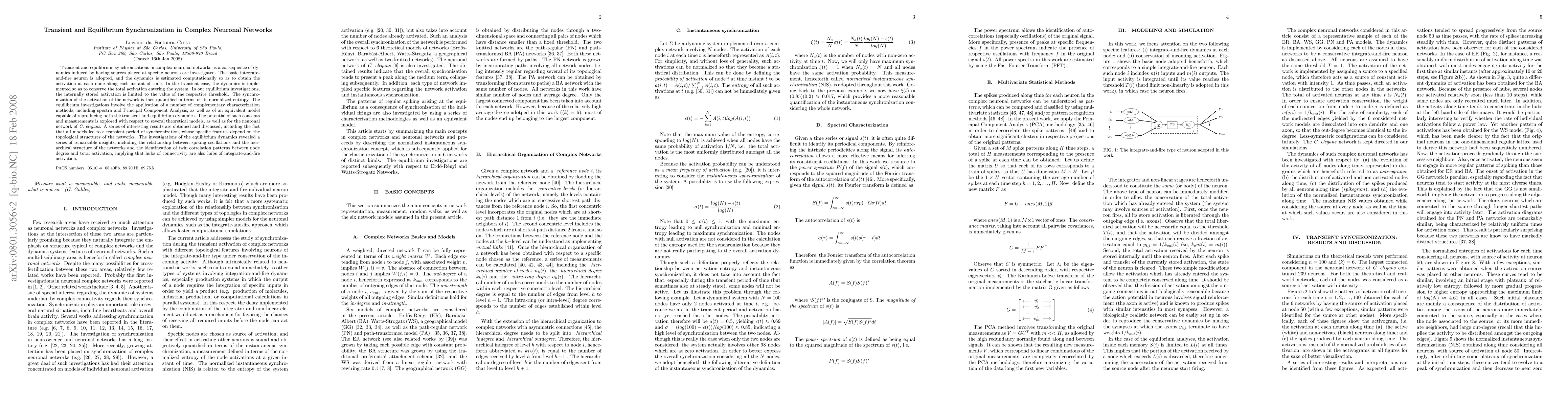 Transient and equilibrium synchronizations in complex neuronal networks as a consequence of dynamics induced by having sources placed at specific neurons are investigated. The basic integrate-and-fire neuron is adopted, and the dynamics is estimated computationally so as to obtain the activation at each node along each instant of time. In the transient case, the dynamics is implemented so as to conserve the total activation entering the system. In our equilibrium investigations, the internally stored activation is limited to the value of the respective threshold. The synchronization of the activation of the network is then quantified in terms of its normalized entropy. The equilibrium investigations involve the application of a number of complementary characterization methods, including spectra and Principal Component Analysis, as well as of an equivalent model capable of reproducing both the transient and equilibrium dynamics. The potential of such concepts and measurements is explored with respect to several theoretical models, as well as for the neuronal network of \emph{C. elegans}. A series of interesting results are obtained and discussed, including the fact that all models led to a transient period of synchronization, whose specific features depend on the topological structures of the networks. The investigations of the equilibrium dynamics revealed a series of remarkable insights, including the relationship between spiking oscillations and the hierarchical structure of the networks and the identification of twin correlation patterns between node degree and total activation, implying that hubs of connectivity are also hubs of integrate-and-fire activation.