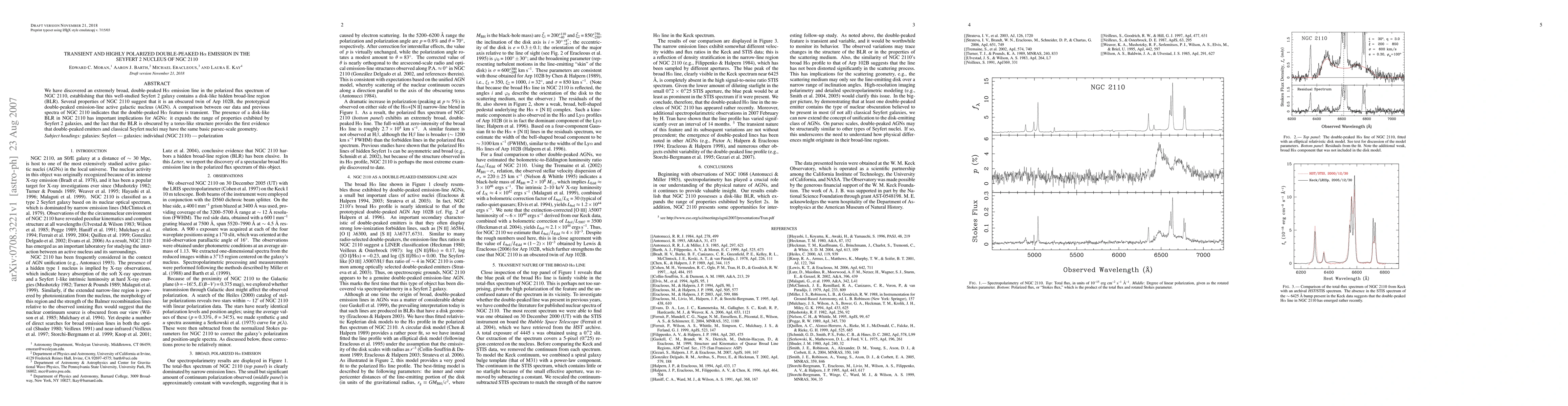 The research reveals a transient, double-peaked H-alpha emission in the Seyfert 2 galaxy NGC 2110, indicating a hidden broad-line region (BLR) and suggesting a similar structure to Arp 102B. This discovery supports the idea that obscured AGNs share fundamental geometry.