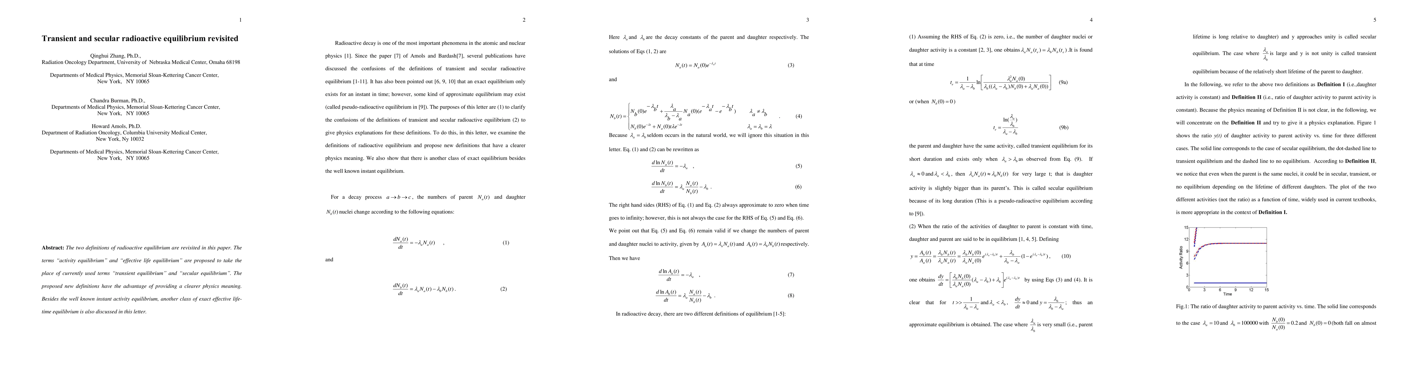 This paper reevaluates radioactive equilibrium concepts, introducing 'activity equilibrium' and 'effective life equilibrium' to replace 'transient equilibrium' and 'secular equilibrium'. It also explores a new class of exact effective life-time equilibrium, providing clearer physical meanings.