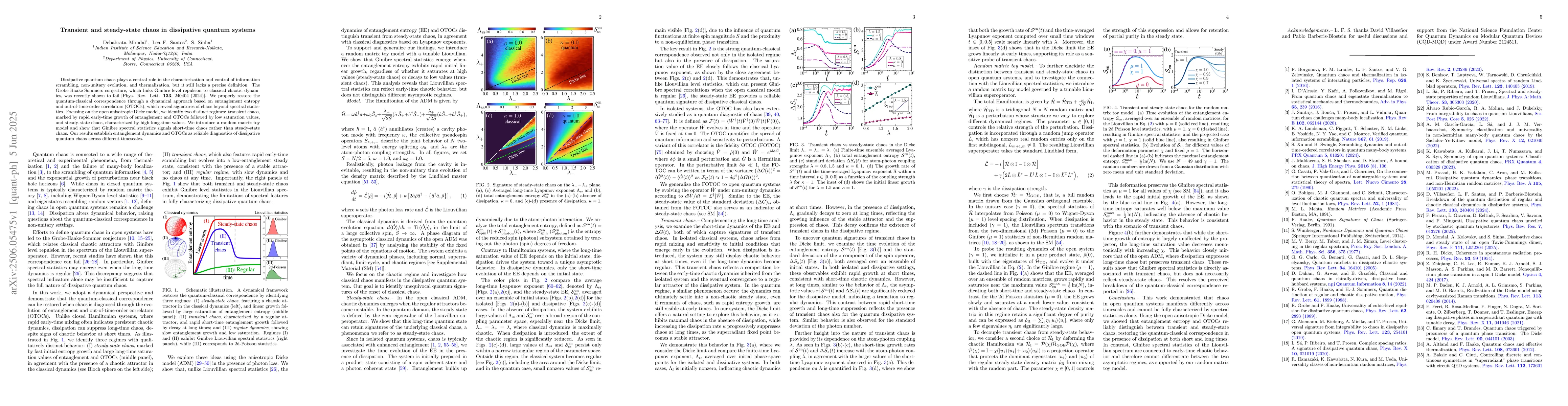 Researchers investigated dissipative quantum chaos, identifying two regimes: transient chaos with rapid early-time growth and steady-state chaos with high long-term values. They used entanglement entropy and out-of-time-order correlators to diagnose chaos across different timescales.