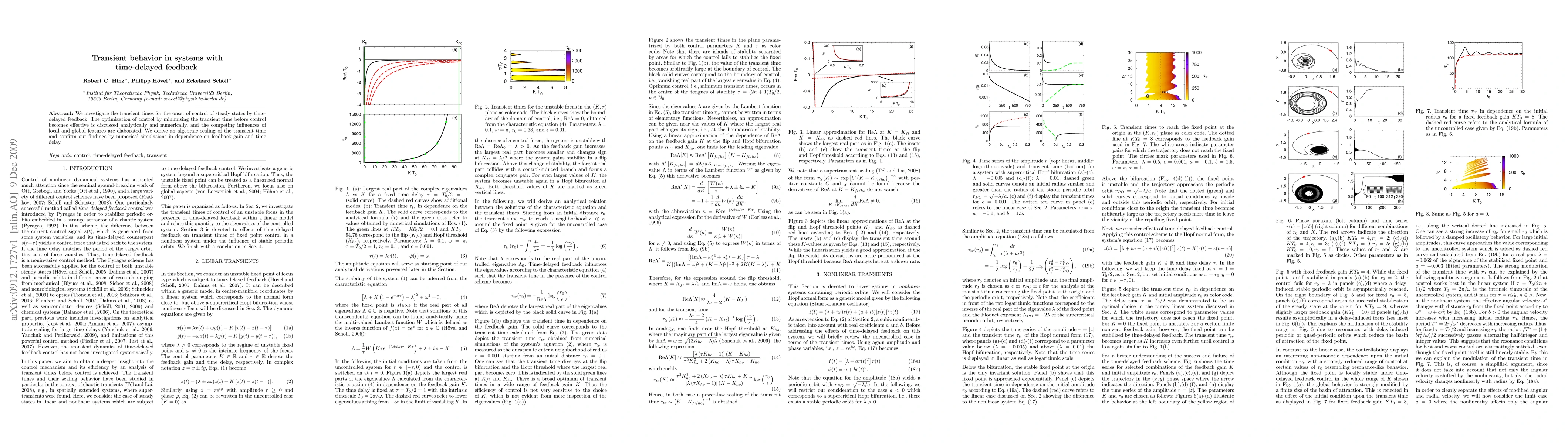 This paper examines the transient times for controlling steady states using time-delayed feedback, optimizing control by minimizing the onset time through analytical and numerical methods. The study reveals an algebraic scaling of transient time influenced by feedback gain and delay, validated by numerical simulations.