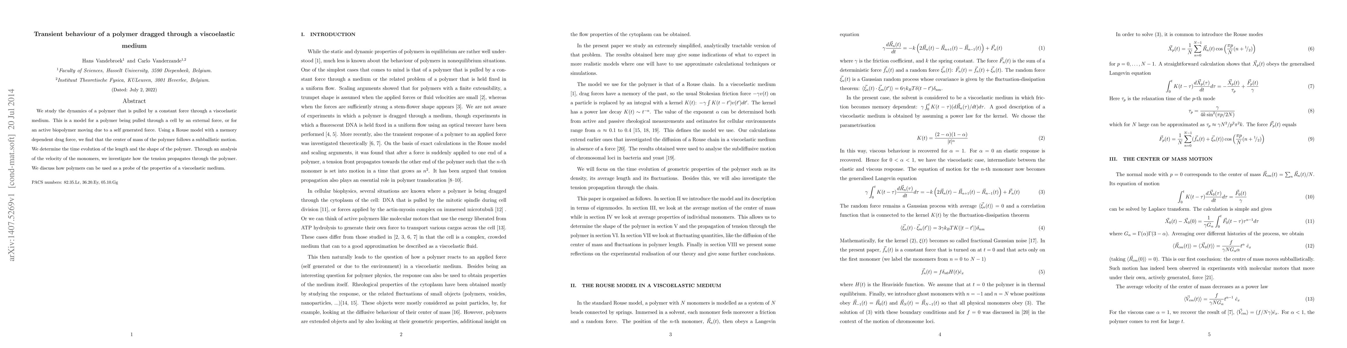 A polymer dragged through a viscoelastic medium exhibits subballistic motion, with its center of mass following a dynamic that is slower than expected, and the tension propagates through the polymer via the velocity of individual monomers.