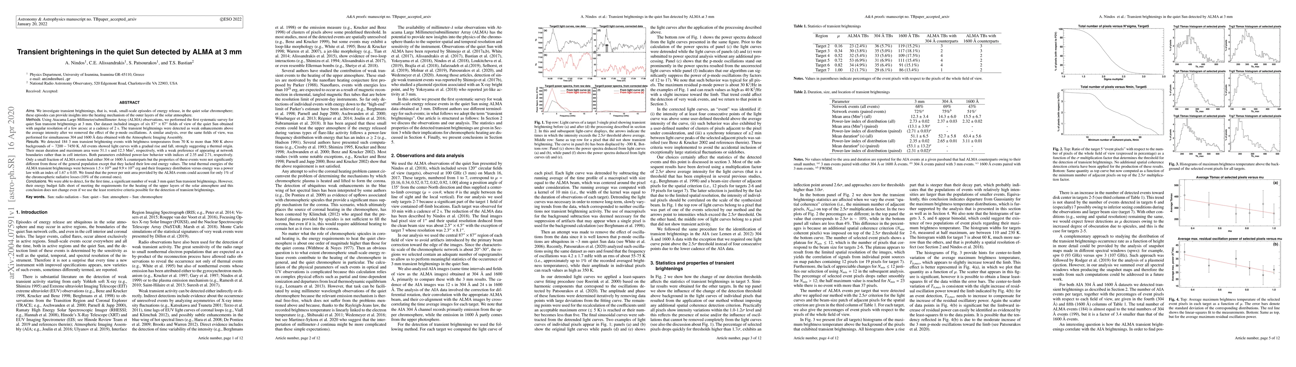 The research performed the first systematic survey for transient brightenings in the quiet solar chromosphere at 3 mm using ALMA observations with an angular resolution of a few arcseconds and a 2-second cadence, comparing results with simultaneous 304 and 1600 Å data from the Atmospheric Imaging Assembly.