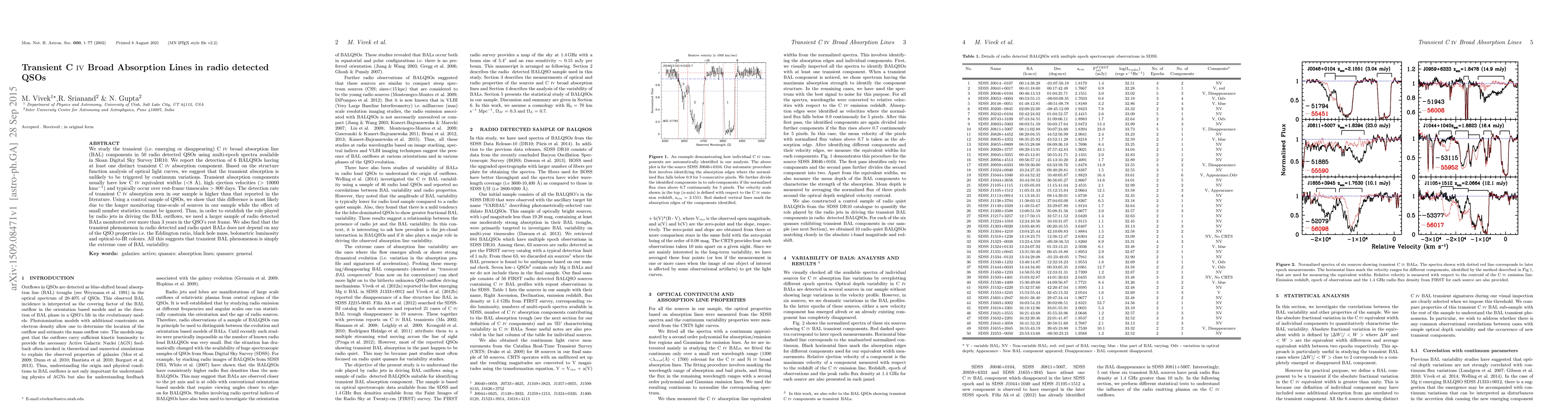 This study investigates the transient C IV broad absorption lines in 50 radio-detected QSOs, finding 6 BALQSOs with distinct transient components. The transient absorption is not likely due to continuum variations and occurs over timescales of >800 days. The higher detection rate in this sample suggests longer monitoring periods, but more data is needed to determine the role of radio jets in BAL outflows.