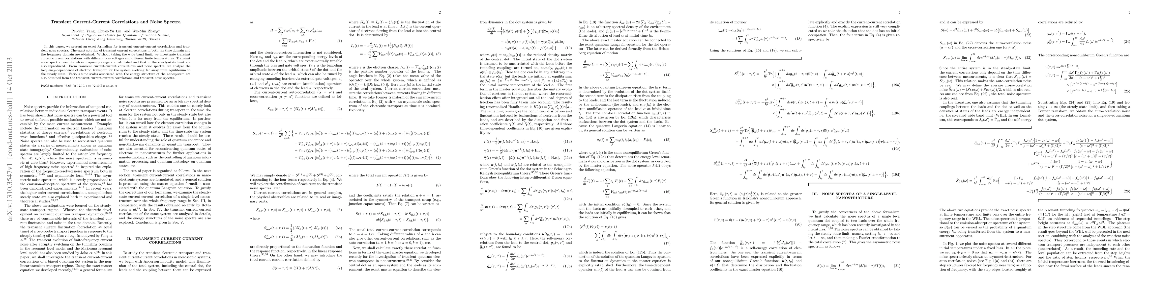 This paper develops an exact formalism for transient current-current correlations and noise spectra, providing solutions in both time and frequency domains. It analyzes the frequency-dependence of electron transport in systems transitioning from non-equilibrium to steady state, and identifies various time scales linked to the system's energy structure.