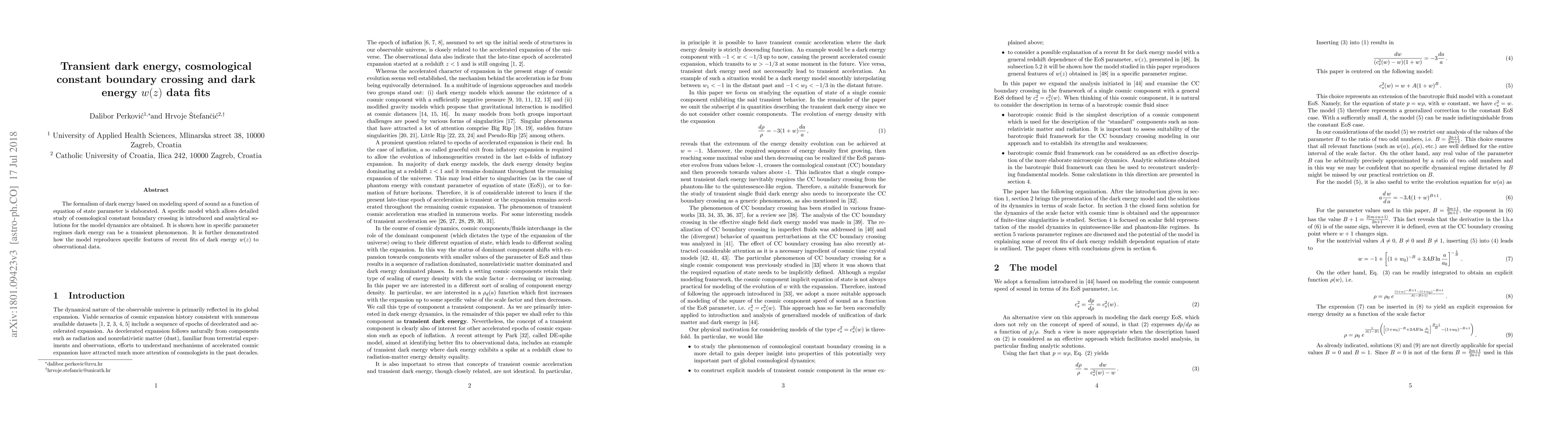 The formalism of dark energy based on modeling speed of sound as a function of equation of state parameter is elaborated. A specific model which allows detailed study of cosmological constant boundary crossing is introduced and analytical solutions for the model dynamics are obtained. It is shown how in specific parameter regimes dark energy can be a transient phenomenon. It is further demonstrated how the model reproduces specific features of recent fits of dark energy $w(z)$ to observational data.