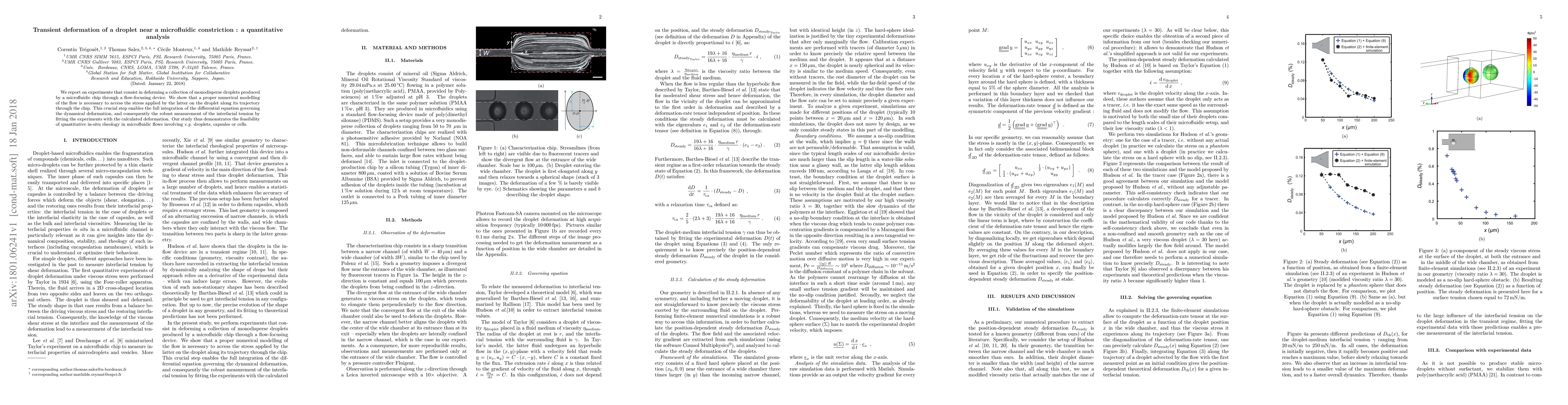 This paper presents experiments on droplet deformation in microfluidic constrictions, emphasizing the necessity of numerical modeling for stress analysis. The study enables precise measurement of interfacial tension through fitting experimental data with calculated deformation, showcasing the potential for quantitative in-situ rheology in microfluidic systems.