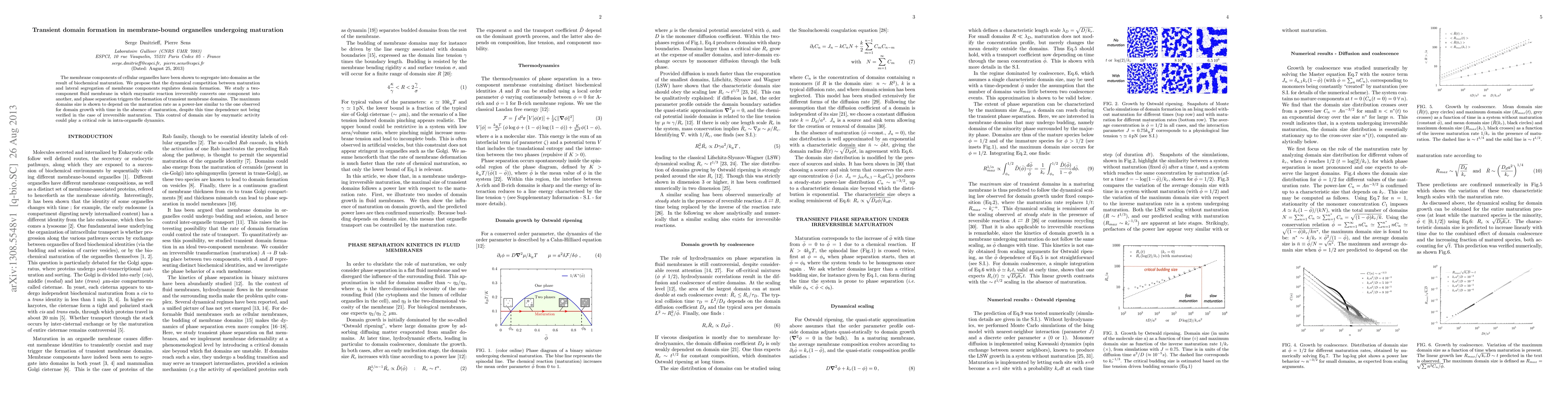 This paper investigates how biochemical maturation and lateral segregation of membrane components lead to transient domain formation in organelles. It demonstrates that enzymatic activity regulating maturation rate controls the size of these domains, suggesting a critical role in the dynamics of membrane-bound organelles.