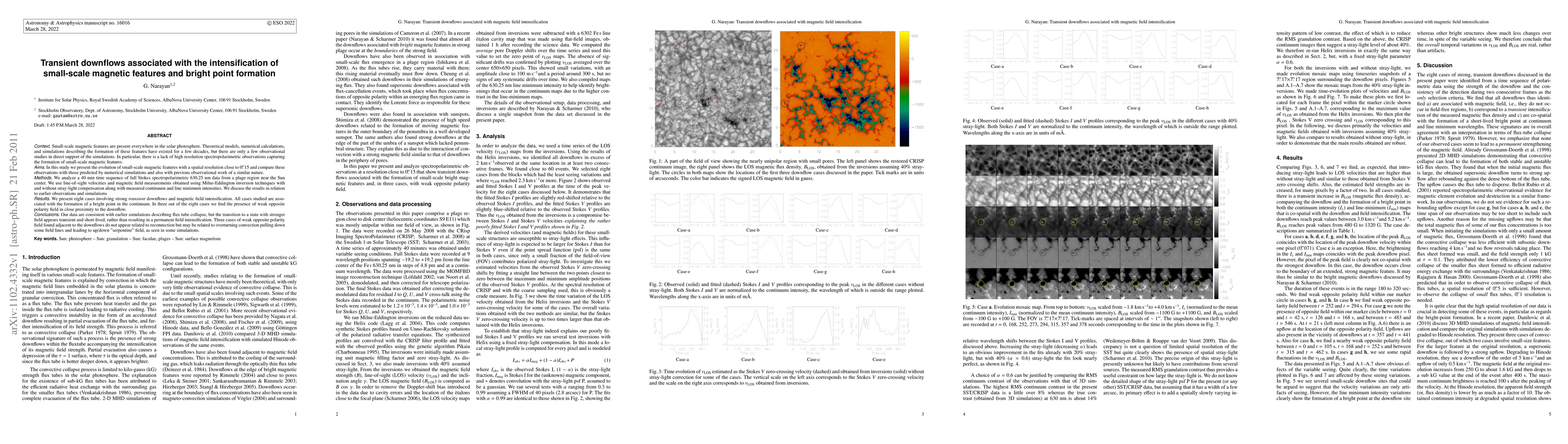 Small-scale magnetic features are present everywhere in the solar photosphere. Theoretical models, numerical calculations, and simulations describing the formation of these features have existed for a few decades, but there are only a few observational studies in direct support of the simulations. In this study we present the evolution of small-scale magnetic features with a spatial resolution close to 0.15 arcsecond and compare these observations with those predicted by numerical simulations and also with previous observational work of a similar nature. We analyze a 40 min time sequence of full Stokes spectropolarimetric 630.25 nm data from a plage region near the Sun center. We use line-of-sight velocities and magnetic field measurements obtained using Milne-Eddington inversion techniques with and without stray-light compensation along with measured continuum and line minimum intensities. We discuss the results in relation to earlier observations and simulations. We present eight cases involving strong downflows and magnetic field intensification. All cases studied are associated with the formation of a bright point in the continuum. In three out of the eight cases we find the presence of weak opposite polarity field in close proximity to the downflow. Our data are consistent with earlier simulations describing flux tube collapse, but the transition to a state with stronger field appears transient and short-lived, rather than resulting in a permanent field intensification. Three cases of weak opposite polarity field found adjacent to the downflows do not appear related to reconnection but may be related to overturning convection pulling down some field lines and leading to up/down "serpentine" field, as seen in some simulations.