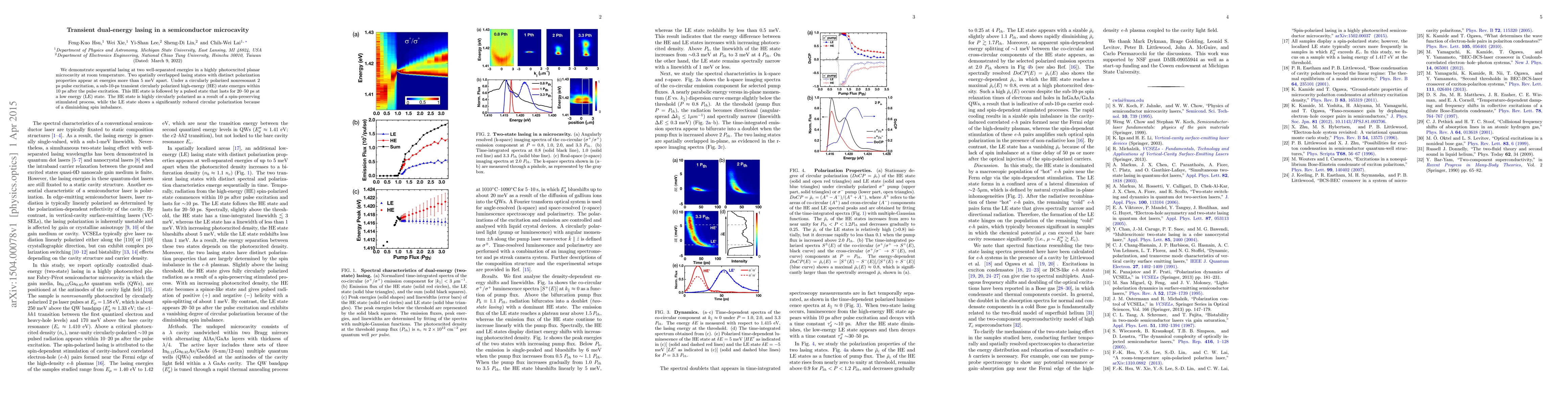Researchers demonstrate transient dual-energy lasing in a semiconductor microcavity, creating two distinct lasing states with different polarization properties that appear at energies over 5 meV apart.
