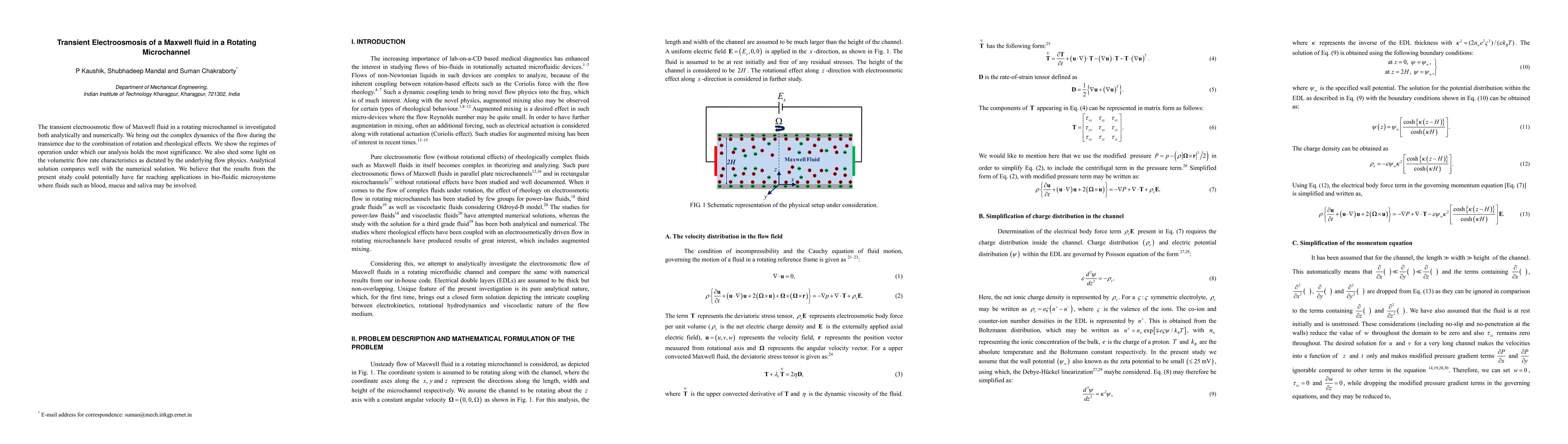 This study investigates the transient electroosmotic flow of Maxwell fluid in a rotating microchannel, revealing complex dynamics due to rotation and rheological effects. Analytical and numerical solutions show significant regimes of operation and volumetric flow rate characteristics, with potential applications in bio-fluidic microsystems.