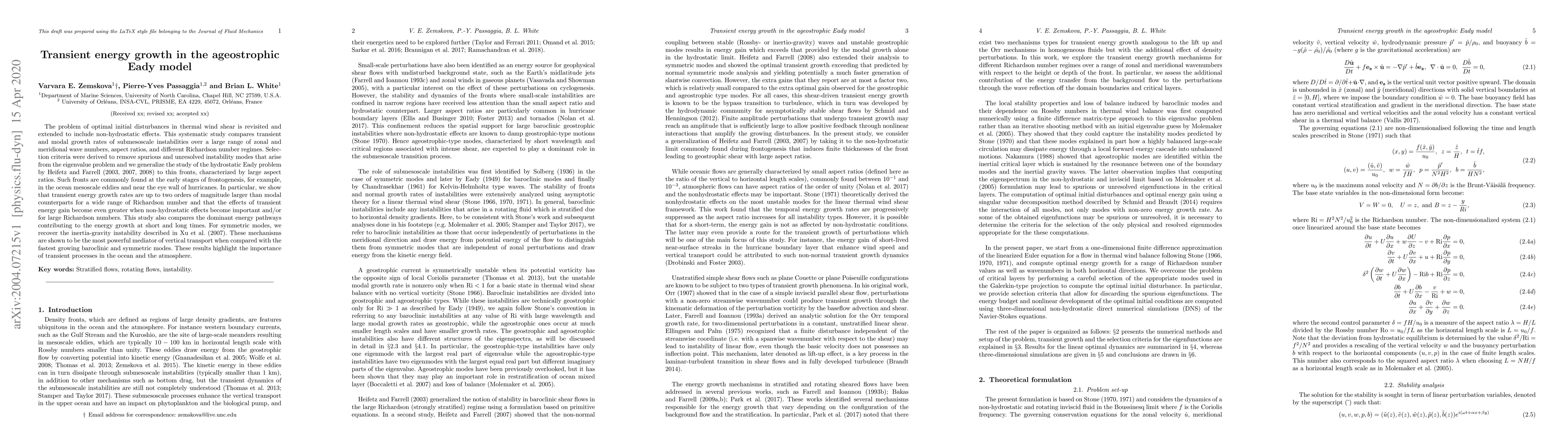 The problem of optimal initial disturbances in thermal wind shear is revisited and extended to include non-hydrostatic effects. This systematic study compares transient and modal growth rates of submesoscale instabilities over a large range of zonal and meridional wave numbers, aspect ratios, and different Richardson number regimes. Selection criteria were derived to remove spurious and unresolved instability modes that arise from the eigenvalue problem and we generalize the study of the hydrostatic Eady problem by Heifetz and Farrell (2003, 2007, 2008) to thin fronts, characterized by large aspect ratios. Such fronts are commonly found at the early stages of frontogenesis, for example, in the ocean mesoscale eddies and near the eye wall of hurricanes. In particular, we show that transient energy growth rates are up to two orders of magnitude larger than modal counterparts for a wide range of Richardson number and that the effects of transient energy gain become even greater when non-hydrostatic effects become important and/or for large Richardson numbers. This study also compares the dominant energy pathways contributing to the energy growth at short and long times. For symmetric modes, we recover the inertia-gravity instability described in Xu et al. (2007). These mechanisms are shown to be the most powerful mediator of vertical transport when compared with the fastest growing baroclinic and symmetric modes. These results highlight the importance of transient processes in the ocean and the atmosphere.