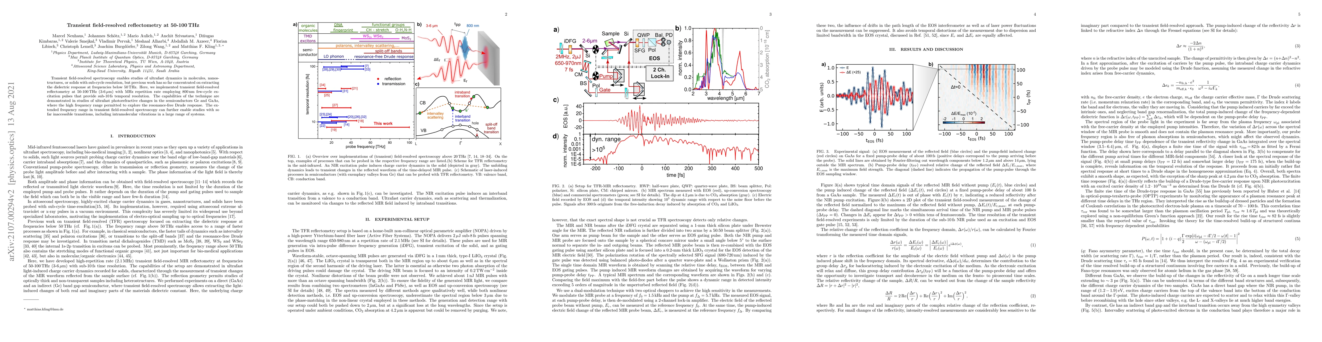 Transient field-resolved spectroscopy enables studies of ultrafast dynamics in molecules, nanostructures, or solids with sub-cycle resolution, but previous work has so far concentrated on extracting the dielectric response at frequencies below 50\,THz. Here, we implemented transient field-resolved reflectometry at 50-100\,THz (3-6\,$\mu$m) with MHz repetition rate employing 800\,nm few-cycle excitation pulses that provide sub-10\,fs temporal resolution. The capabilities of the technique are demonstrated in studies of ultrafast photorefractive changes in the semiconductors Ge and GaAs, where the high frequency range permitted to explore the resonance-free Drude response. The extended frequency range in transient field-resolved spectroscopy can further enable studies with so far inaccessible transitions, including intramolecular vibrations in a large range of systems.