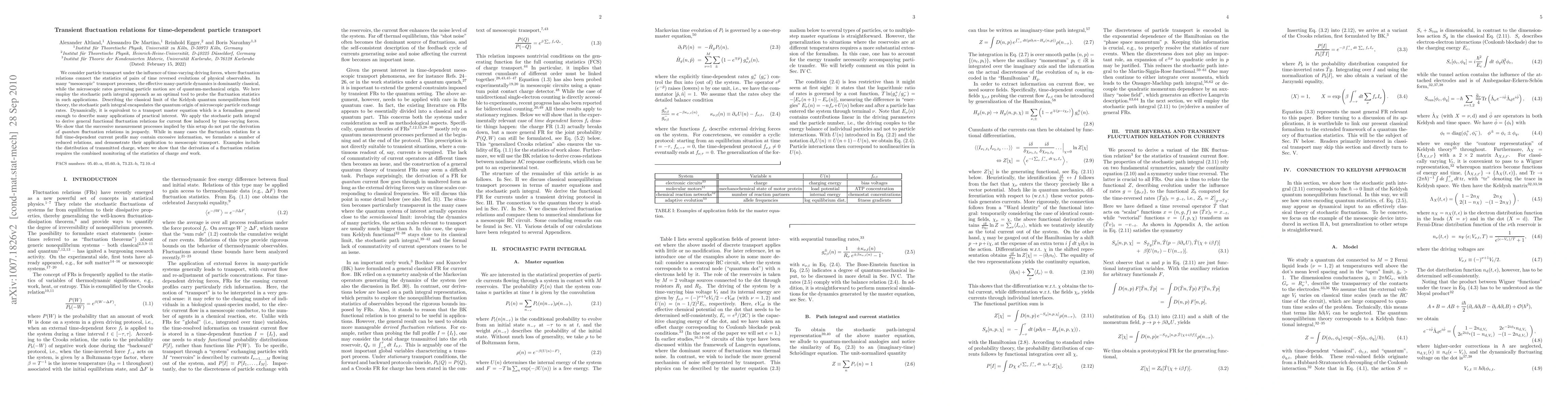 This paper develops transient fluctuation relations for particle transport under time-varying driving forces, using the stochastic path integral approach to bridge classical dynamics and quantum mechanics. It derives general functional fluctuation relations for current flow and demonstrates their application to mesoscopic transport processes.