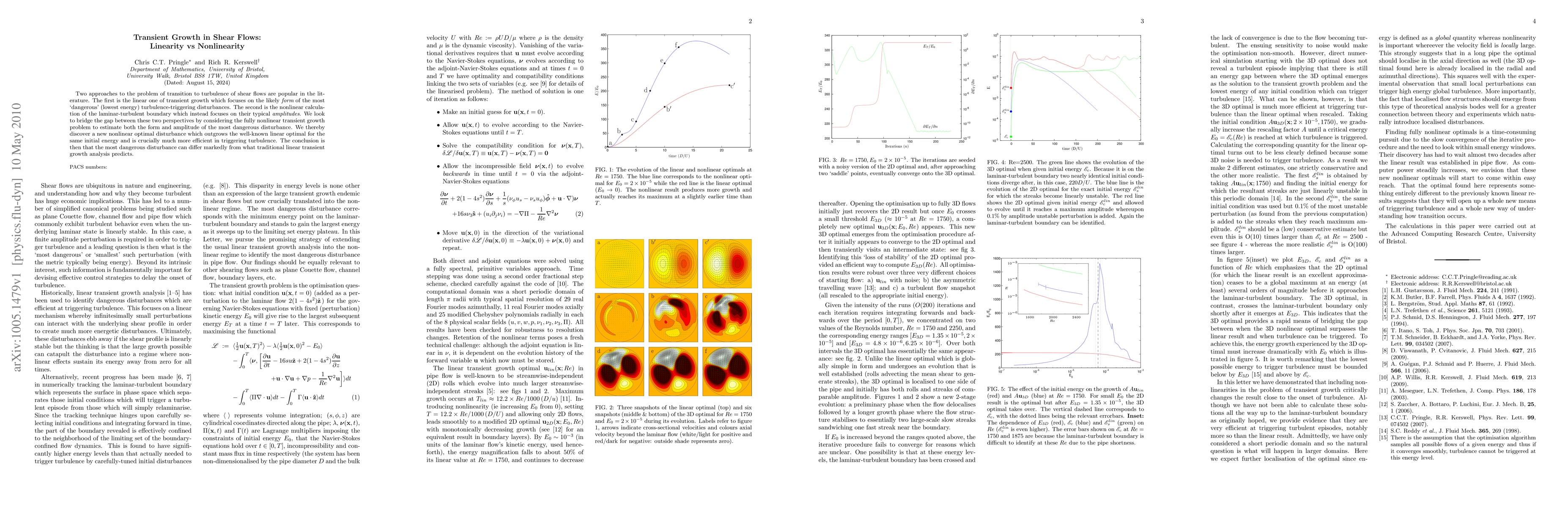 This paper investigates the transition to turbulence in shear flows, comparing linear transient growth analysis with fully nonlinear approaches. It finds a new nonlinear optimal disturbance that is more efficient than the traditional linear optimal in triggering turbulence, suggesting a significant discrepancy between linear predictions and actual behavior.