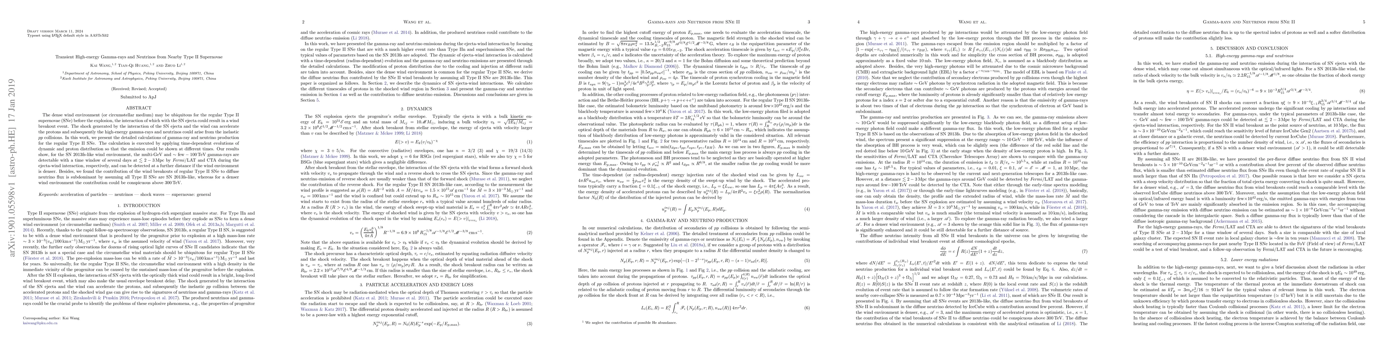 The dense wind environment (or circumstellar medium) may be ubiquitous for the regular Type II supernovae (SNe) before the explosion, the interaction of which with the SN ejecta could result in a wind breakout event. The shock generated by the interaction of the SN ejecta and the wind can accelerate the protons and subsequently the high-energy gamma-rays and neutrinos could arise from the inelastic pp collisions. In this work, we present the detailed calculations of gamma-ray and neutrino production for the regular Type II SNe. The calculation is executed by applying time-dependent evolutions of dynamic and proton distribution so that the emission could be shown at different times. Our results show, for the SN 2013fs-like wind environment, the multi-GeV and ~ few-100 TeV gamma-rays are detectable with a time window of several days at <~ 2-3 Mpc by Fermi/LAT and CTA during the ejecta-wind interaction, respectively, and can be detected at a further distance if the wind environment is denser. Besides, we found the contribution of the wind breakouts of regular Type II SNe to diffuse neutrino flux is subdominant by assuming all Type II SNe are SN 2013fs-like, whereas for a denser wind environment the contribution could be conspicuous above 300TeV.
